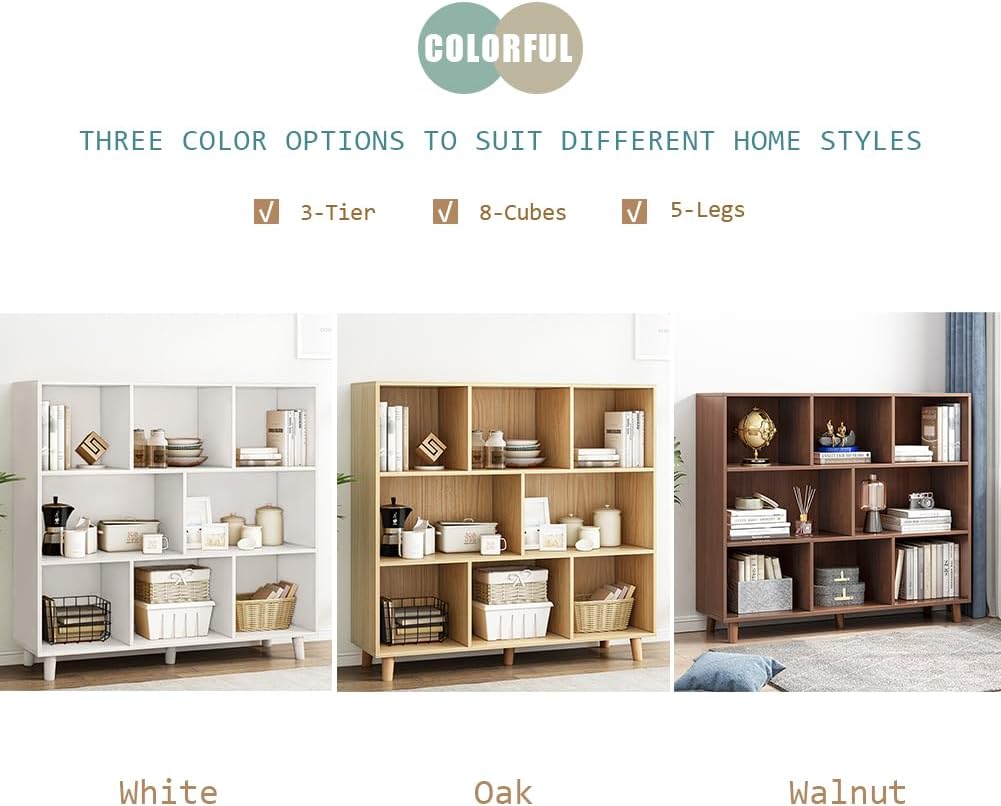 IOTXY Open Cube Low Bookcase - 3-Tier Freestanding Storage Display Cabinet Organizer with Legs for Home Office, 8-Cubes Open Shelf Short Bookshelf, Oak