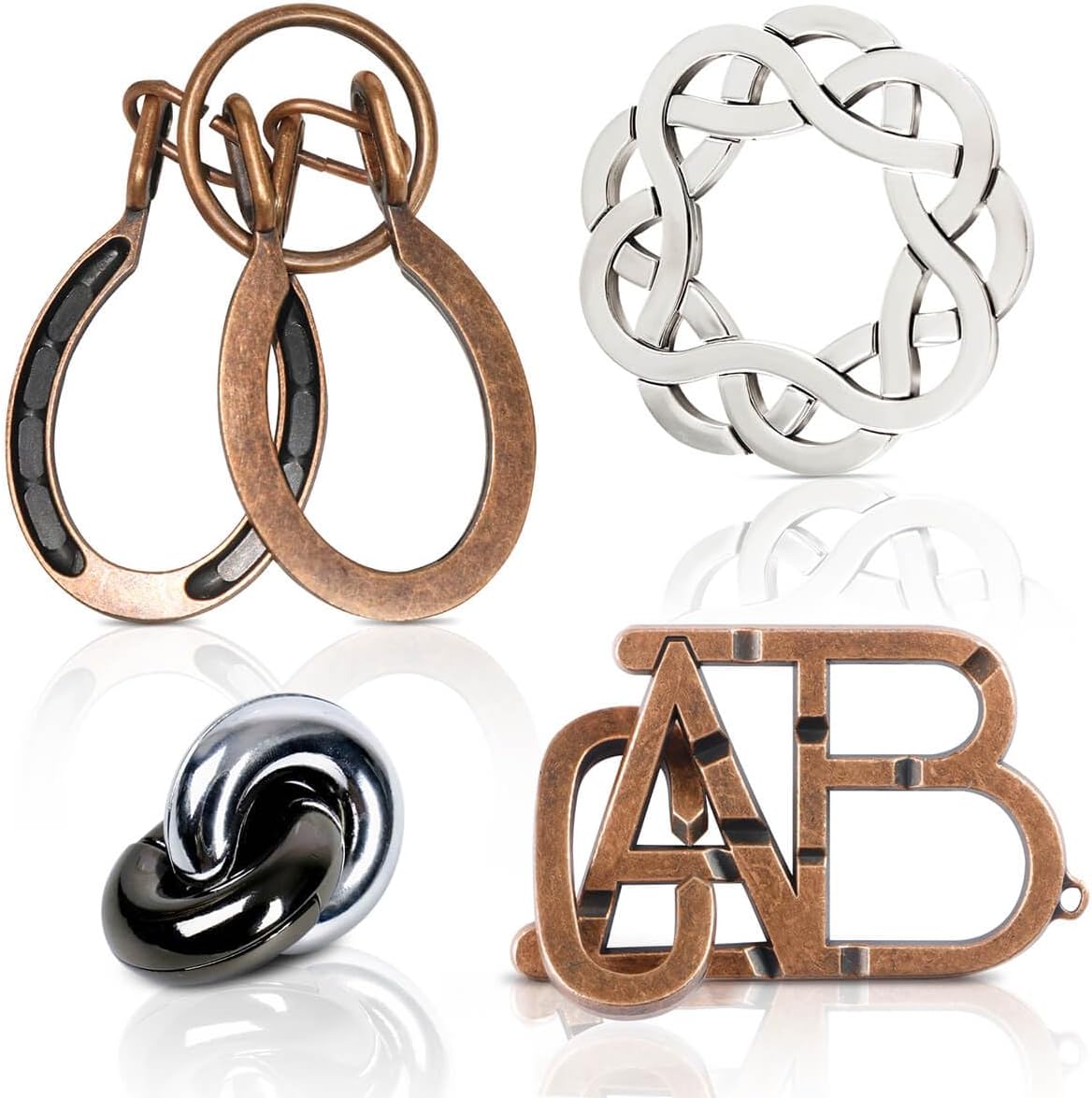 Fun Metal Brain Teaser Puzzle Games - Adults Mind 3D Toys -Teens IQ Insight Challenge - Educational Gift for Ages 12+(4PCS)