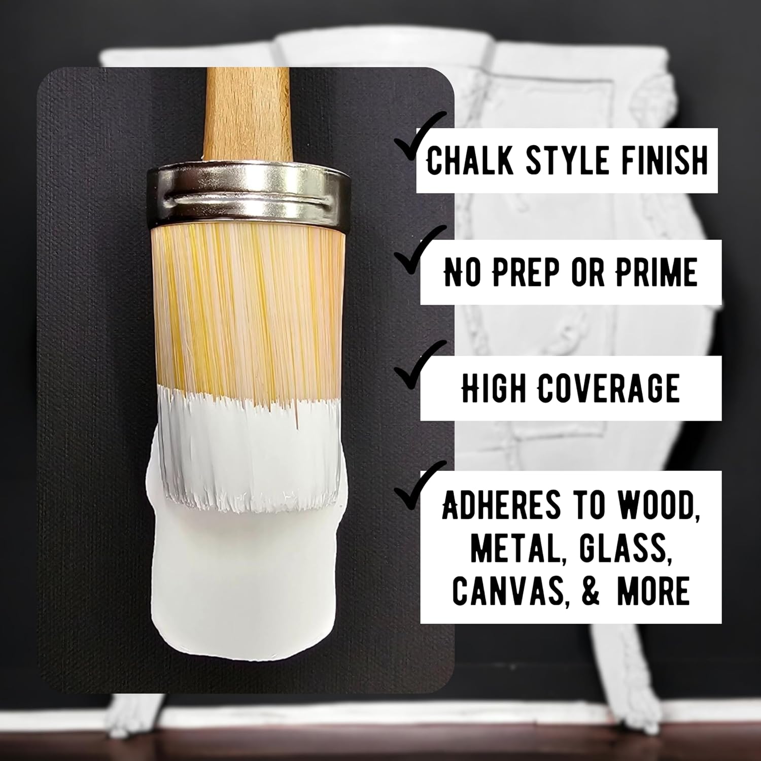 - Unmatched Versatility: Our Premium Chalk Paint for Furniture stands out as the ultimate choice when looking for paint for dressers, paint for tables, paint for desks or paint for crafts and home decor. Our water-based formula has unlimited possibilities and adheres to most surfaces. The consistency and texture give your project a vintage or country chic painted look. Our chalk paint formula is ultra-low VOC, Reconstitutes with water, and blends beautifully and has very little odor.