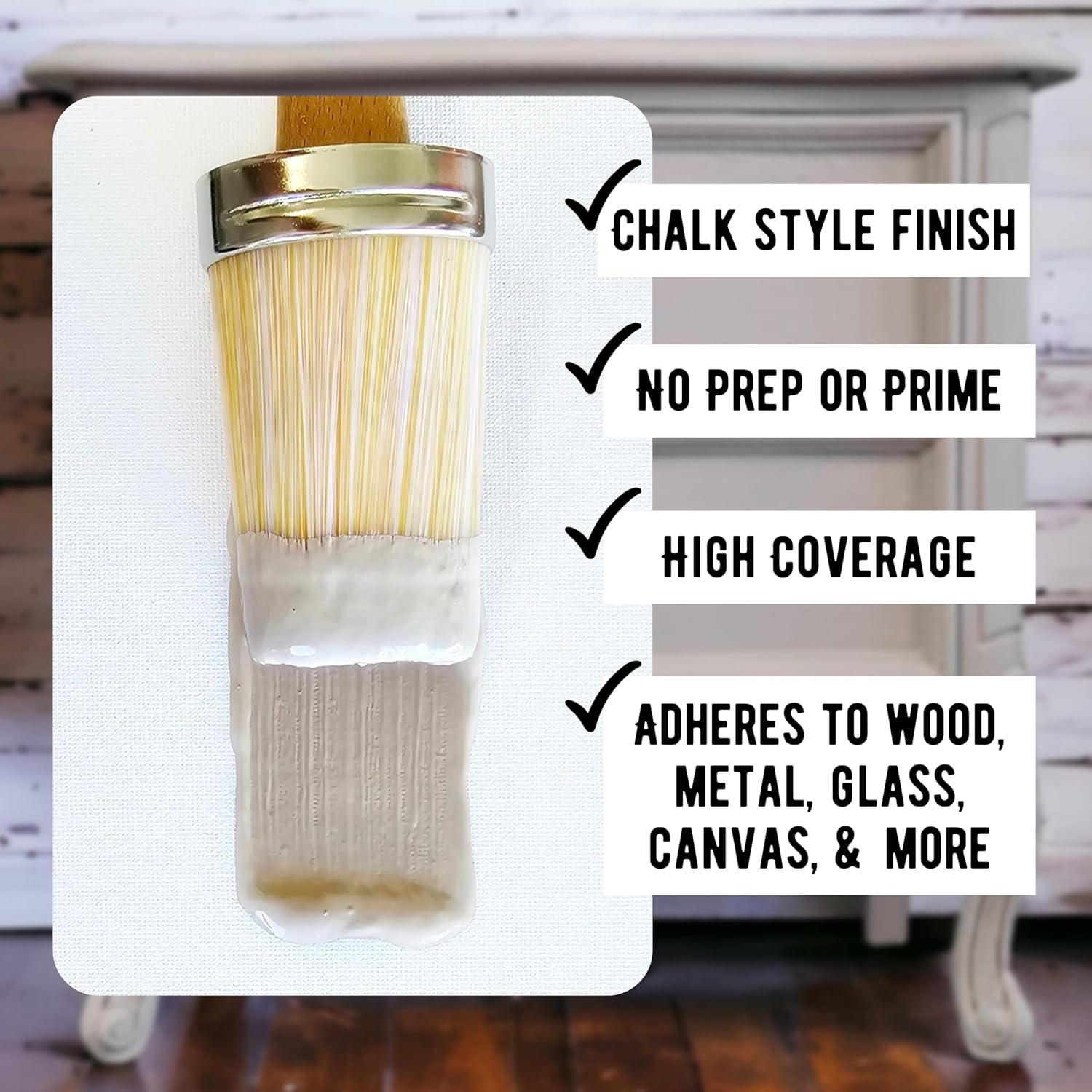 - Unmatched Versatility: Our Premium Chalk Paint for Furniture stands out as the ultimate choice when looking for paint for dressers, paint for tables, paint for desks or paint for crafts and home decor. Our water-based formula has unlimited possibilities and adheres to most surfaces. The consistency and texture give your project a vintage or country chic painted look. Our chalk paint formula is ultra-low VOC, Reconstitutes with water, and blends beautifully and has very little odor.
