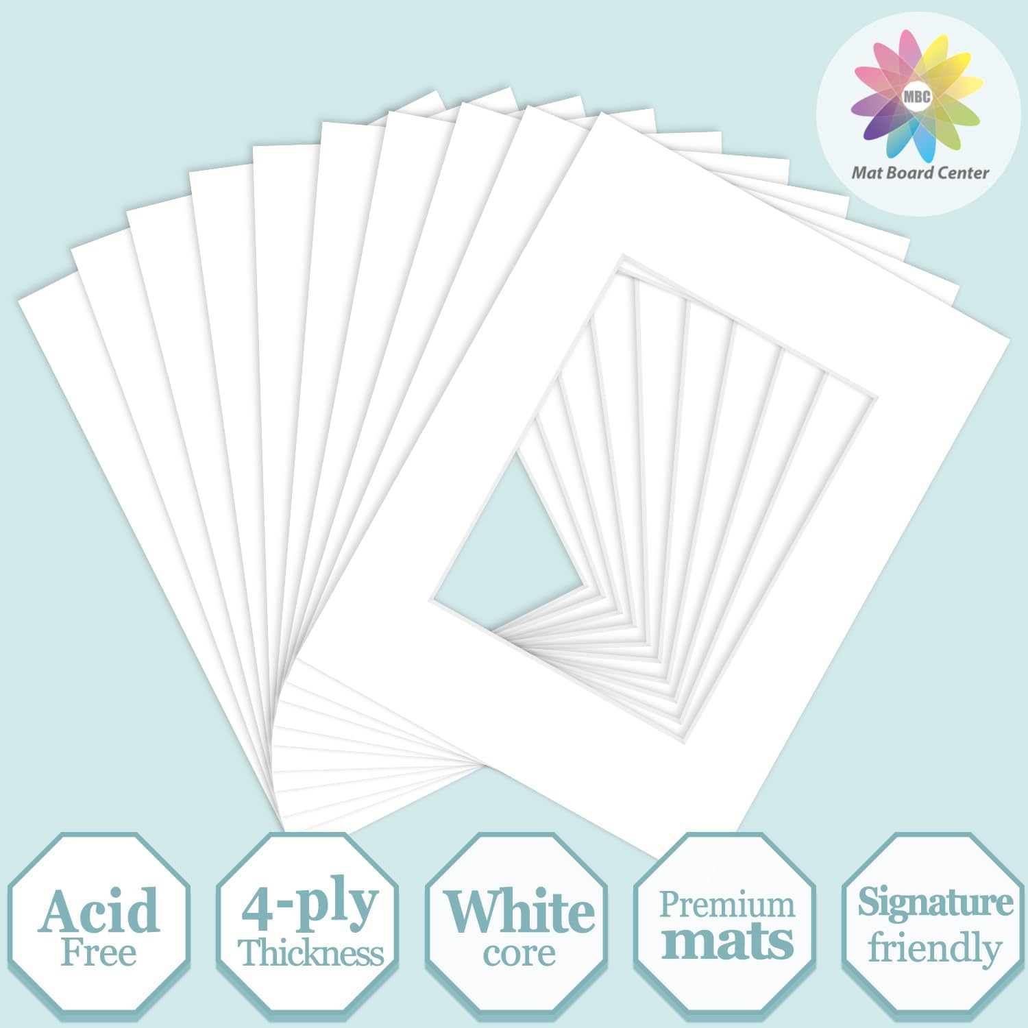 MBC Mat Board Center, 10 Pack 9X12 for 6X8 White Picture Mats Frame Mattes, Bevel Cut, Acid Free, 4-Ply Thickness
