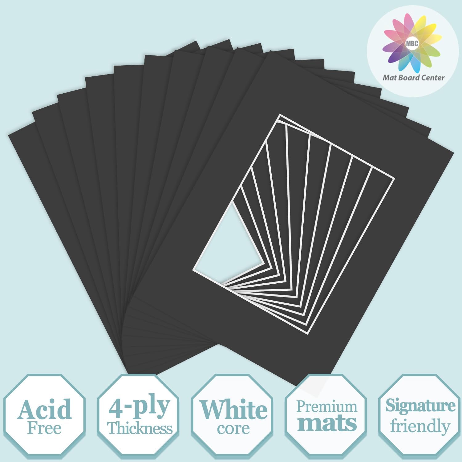 MBC Mat Board Center, 10 Pack 9X12 for 6X8 Black Picture Mats Frame Mattes, Bevel Cut, Acid Free, 4-Ply Thickness
