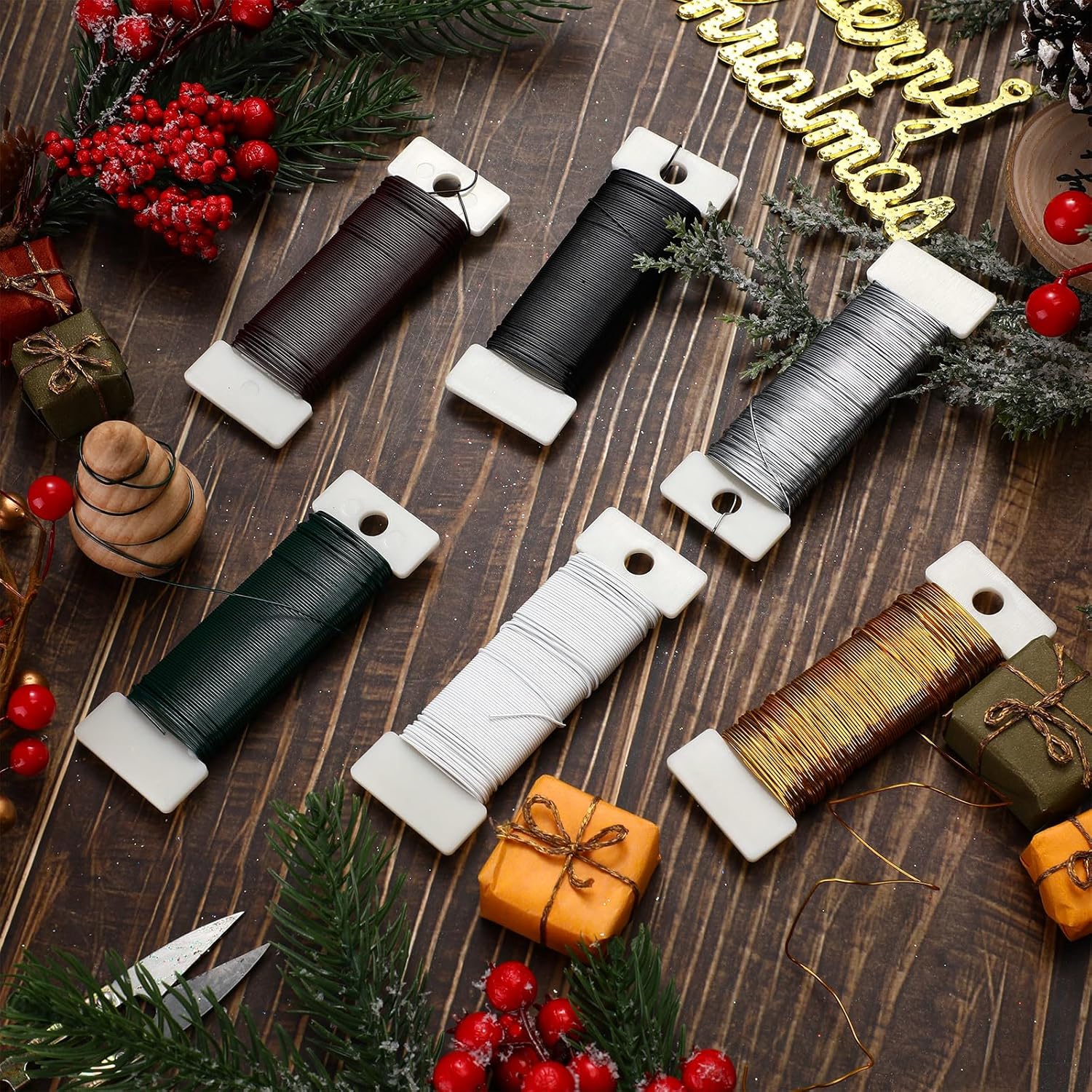 6 Rolls 112 Yards Floral Flexible Paddle Wire Floral Bind Wire for Crafts, Christmas Garland and Flower Arrangements DIY Craft, Christmas Holiday Decoration(Green, Coffee, Silver, Gold, Black, White)