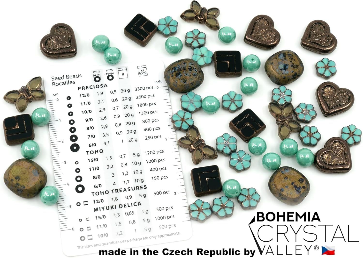- ⭕️ COLOR ► Shades of brown brass and turqouise opaque beads mix ⭕️ BEADS ► only FOCAL bead mix with butterflies, flowers, hearts, and table-cut beads