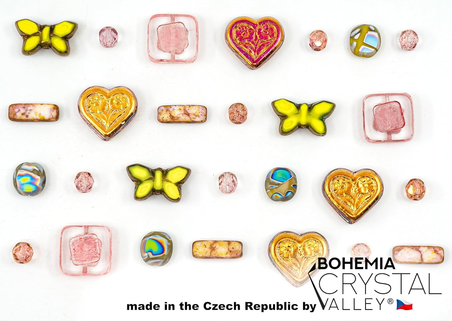- ⭕️ COLOR ► Pale pink and pale green bead mix with opaque and transparent beads ⭕️ BEADS ► only FOCAL bead mix with squares, rectangles, butterflies, hearts, and table-cut beads
