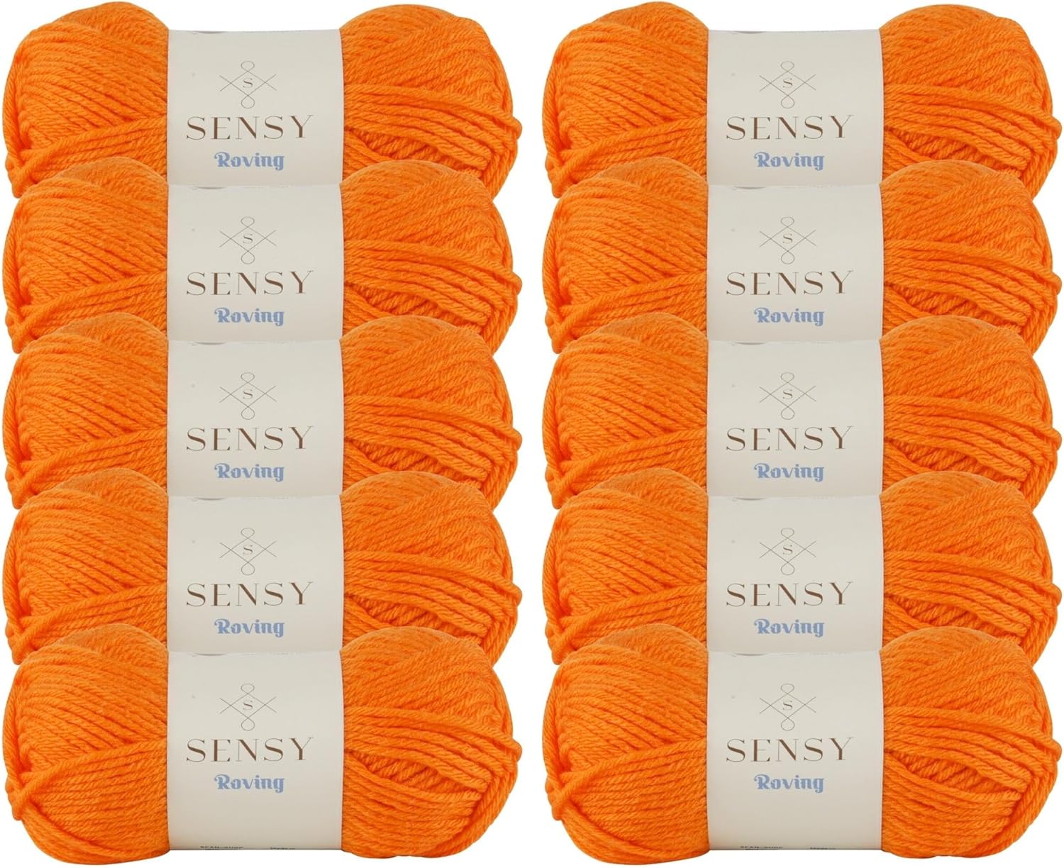 10 Skeins of Sensy Roving Yarn, 3.5 oz, 132 Yards, Gauge 5 Bulky (Pumpkin)