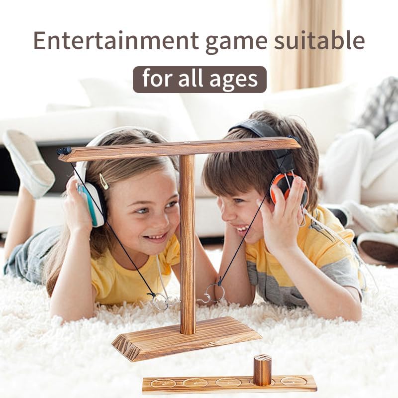 - 【Rules of the game】The 2 player game is to place the wooden cup in the middle of the circle, pick up the circle and go! For each hook you take, move the wooden cup 1 space towards your opponent. The player wins when the wooden cup is moved away from the end of the ladder. Agree on a bet with your competitor before the game and play each style of game.