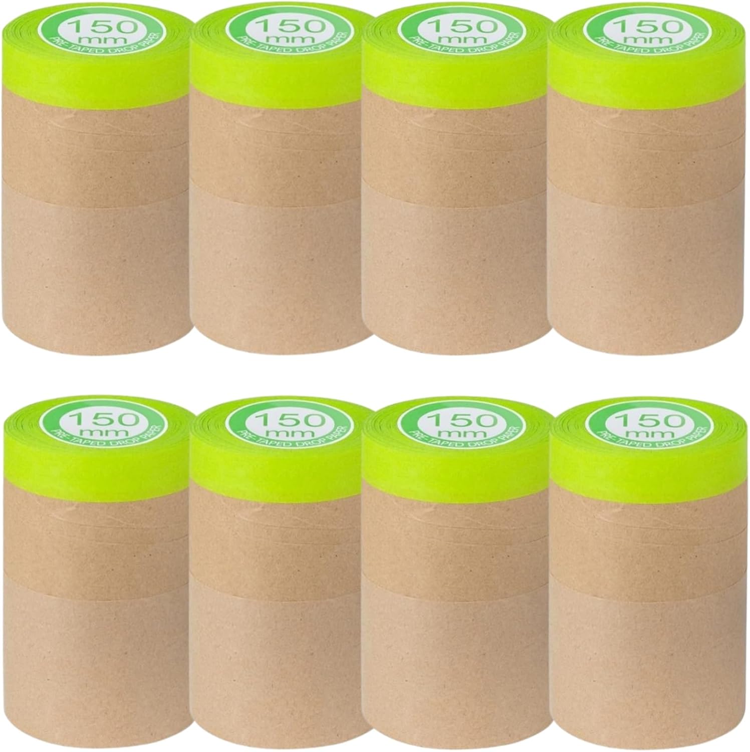 Pre-Taped Painting Masking Paper: 8 Rolls 6 Inch x 50 Feet Tape and Drape Painters Paper, Self-Adhesive Paint Protective Kraft Paper Roll