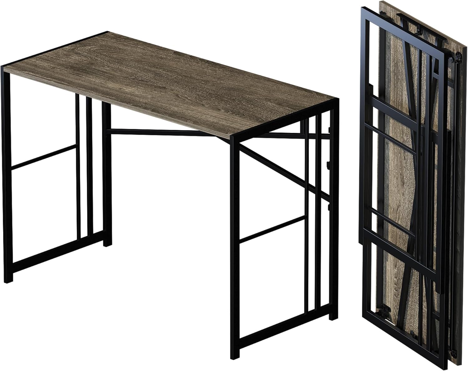 40 inch Folding Desk, Writing Gaming Computer Camping Desk, No Assembly Required Home Office Table, Black Oak