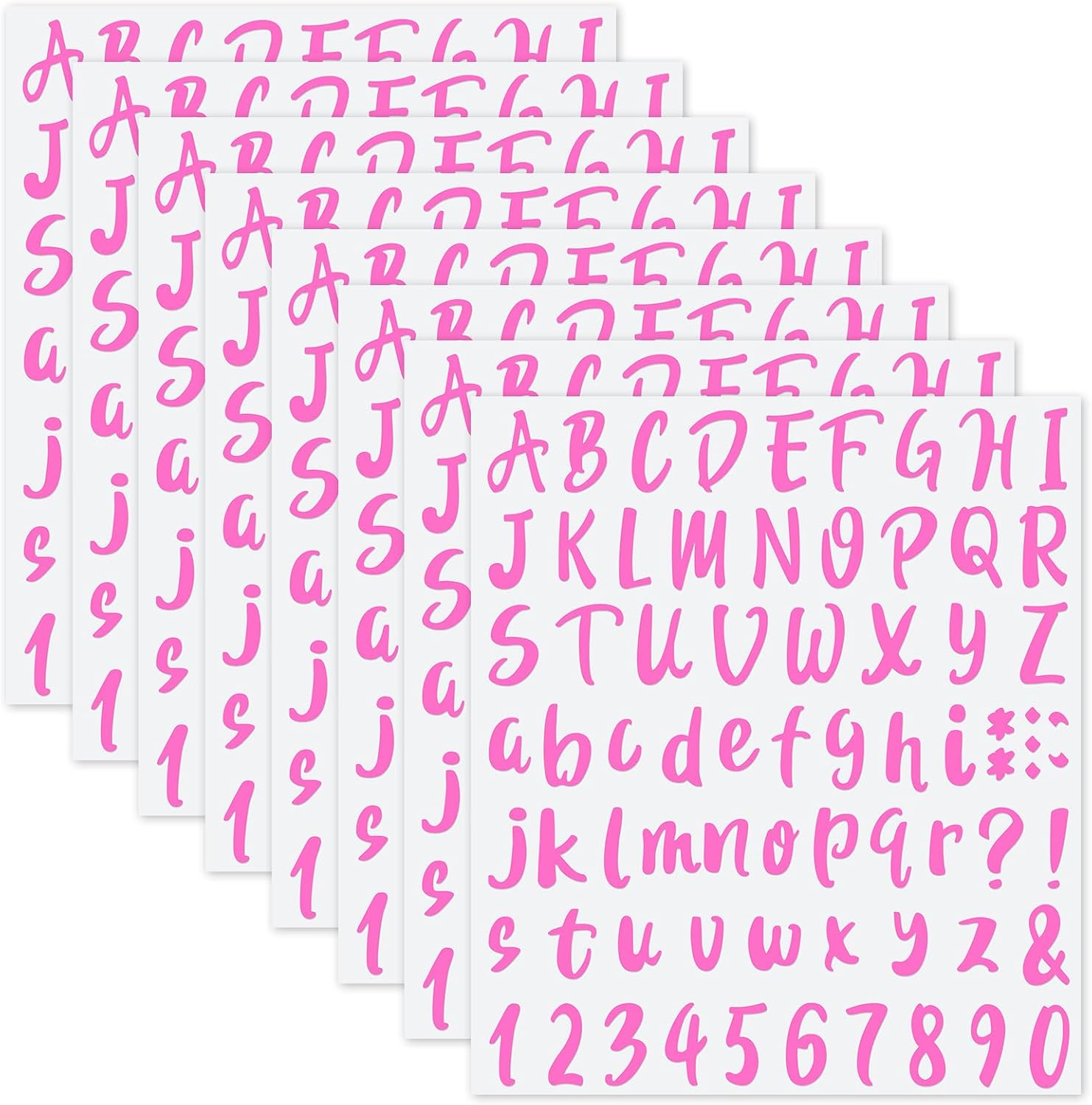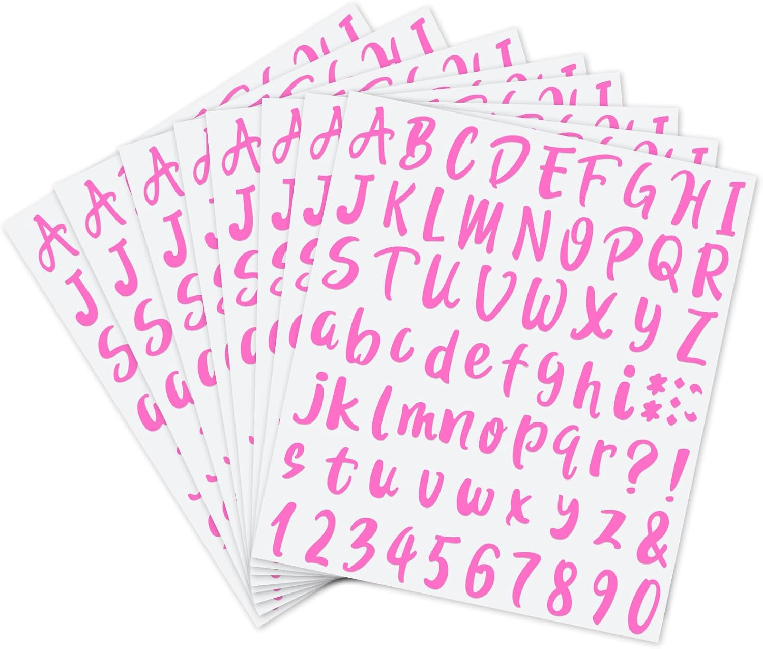 Outus 576 Pieces 8 Sheets Letters Stickers Self Adhesive Vinyl Letter Alphabet Number Stickers Mailbox Numbers Sticker, Decals for Classroom Decor, Sign, Door(Pink,1 Inch)