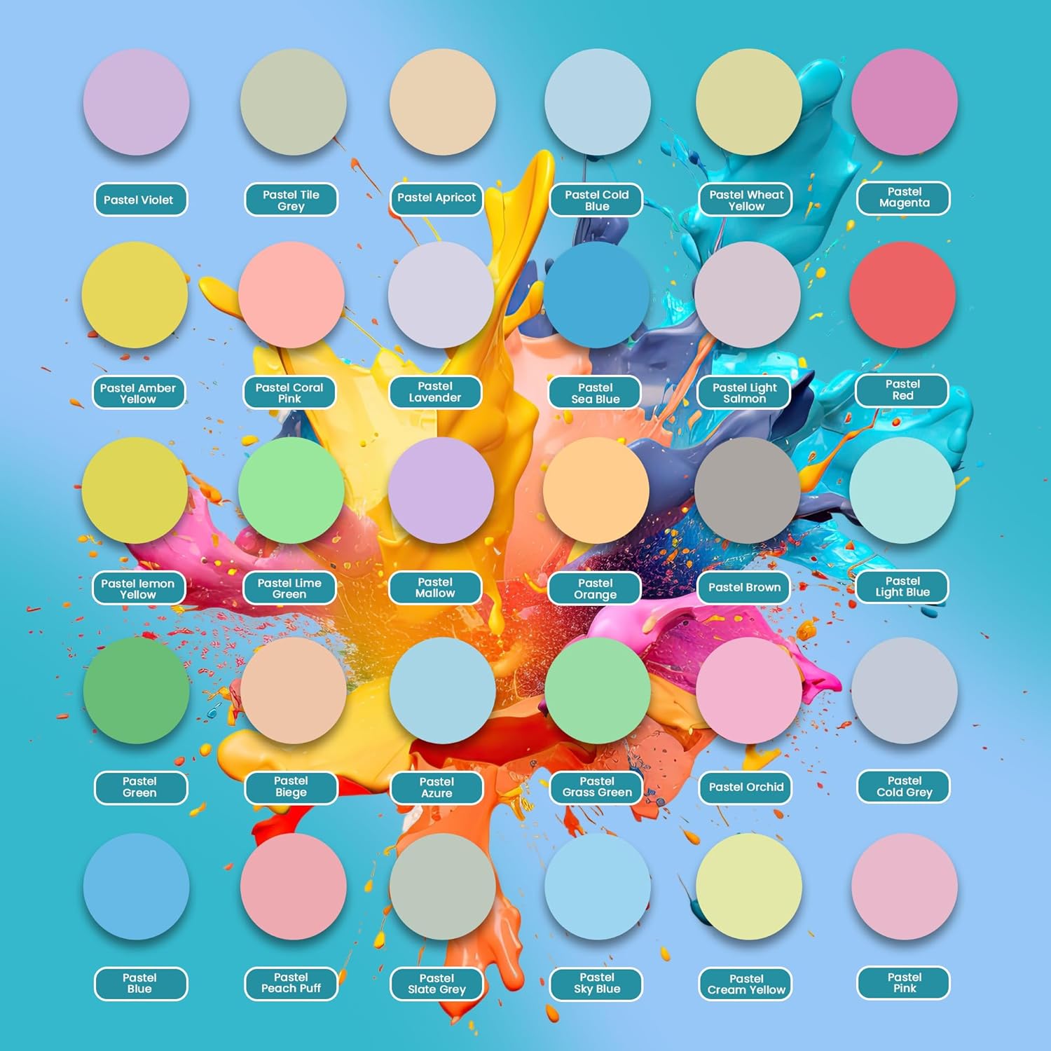 Acrylic Pouring Paint Set | 30 Vibrant Colors Including An Array Of Metallic, Neon & Pastel Paints | Pre Mixed, Ready to Use, High Flow Paint For Canvas, Paper, and More | 2 Ounces Per bottle (Pastel
