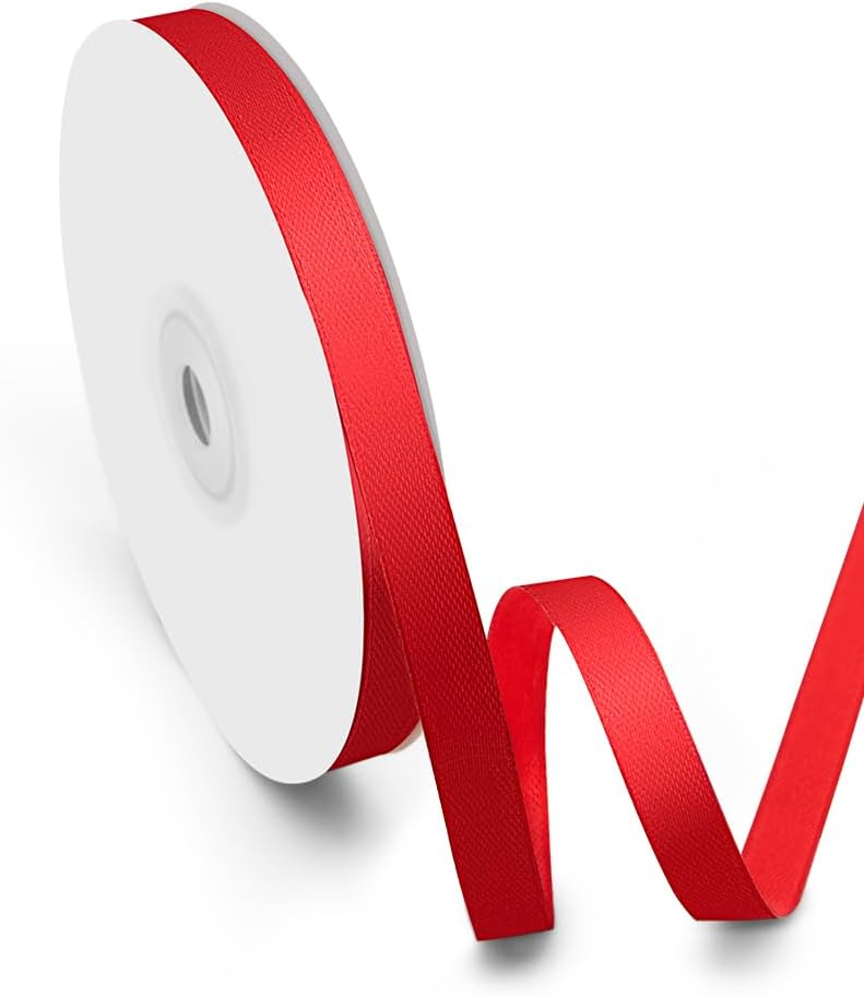 3/8" Width x 50 Yards Satin Fabric Ribbon, Red Ribbon Perfect for DIY Bows, Gift Wrapping, Craft, Flower Bouquet, Christmas and Party Decoration