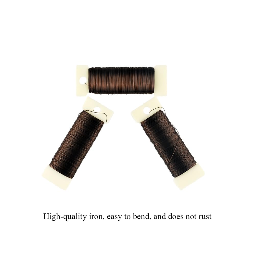 HAHIYO 26Gauge Coffee Color Metal Floral Wire - 3 Rolls, 115 Yards (345 Feet) - Flexible Paddle Wire for Craft, Christmas Wreath, Flower Arrangement, Bouquet Wrapping, Wedding, DIY