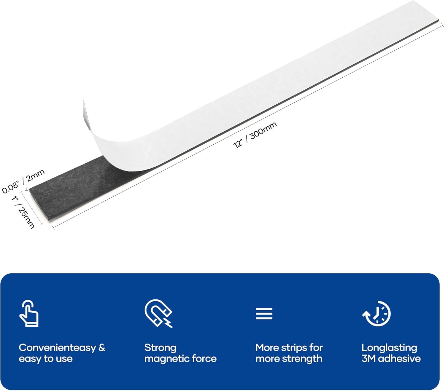 - SIZE: Each heavy duty magnetic tape measures 1 x 12 inches with a 0.08 inches(2 mm) thickness. 6 packs pre-cut magnetic strips in one package to meet your needs in any situation.