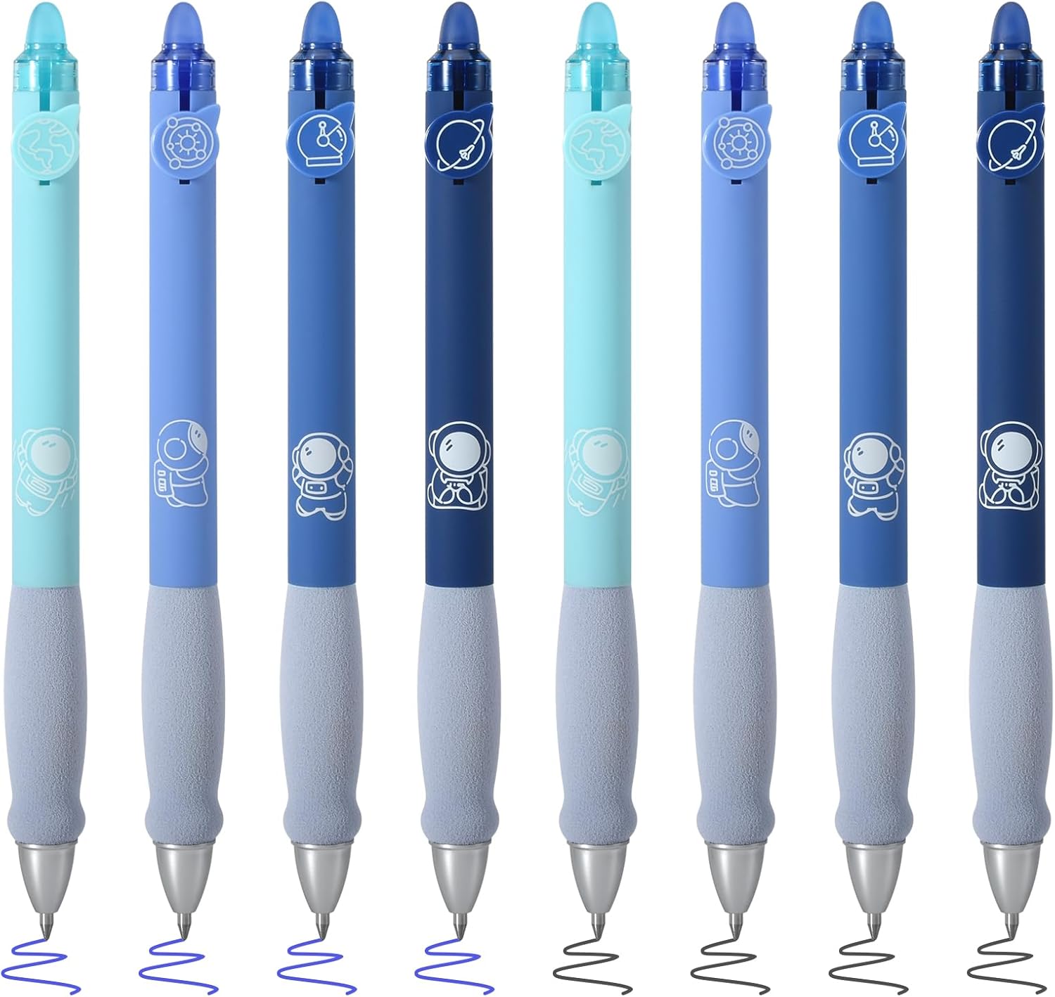 BAYTORY 8Pcs Cute Retractable Erasable Gel Pens, Blue and Black Ink Pen with Eraser Clear, Smooth Writing Comfortable to Use for Note Taking Marking Planner Crossword Puzzles (Blue)