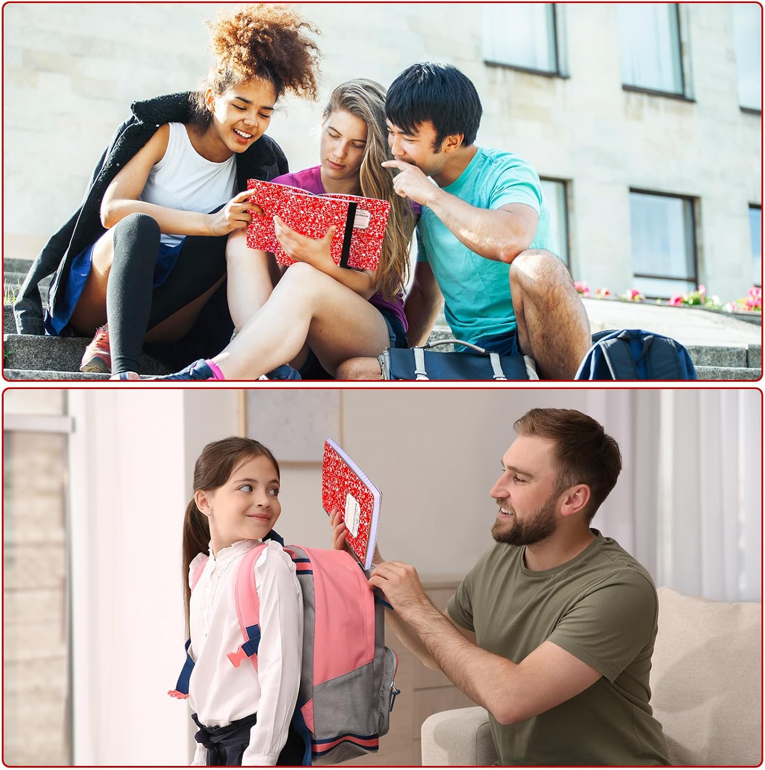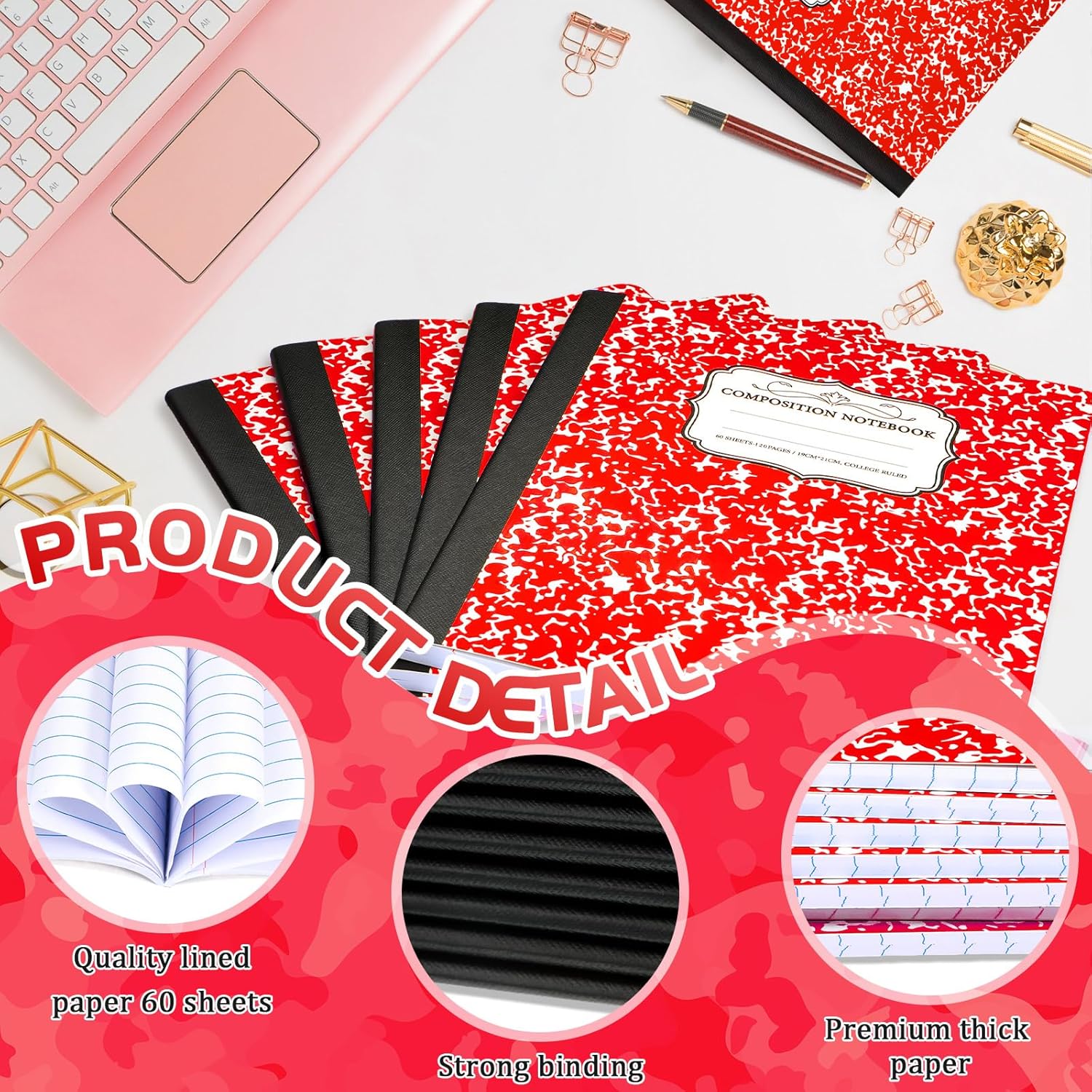 Seajan 20 Pack Composition Notebooks, Wide Ruled Paper, 7-1/2" x 9-3/4" Marble Hard Covers, 60 Sheets, Composition Notebooks Bulk for Students Back to School Adults Office Supplies(Red)