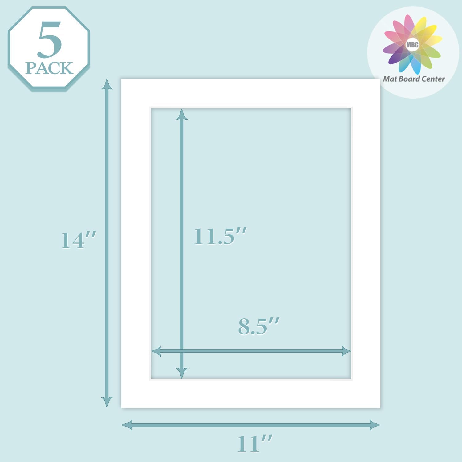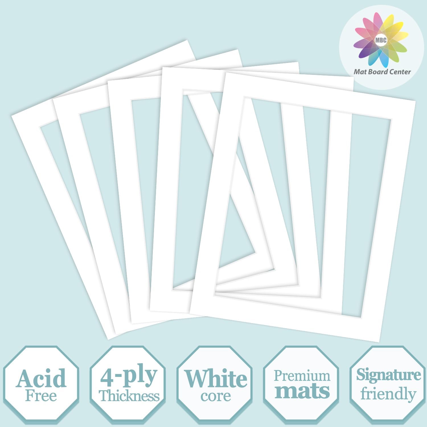 MBC Mat Board Center, 5 Pack 11X14 for 9X12 White Picture Mats Frame Mattes, Bevel Cut, Acid Free, 4-Ply Thickness