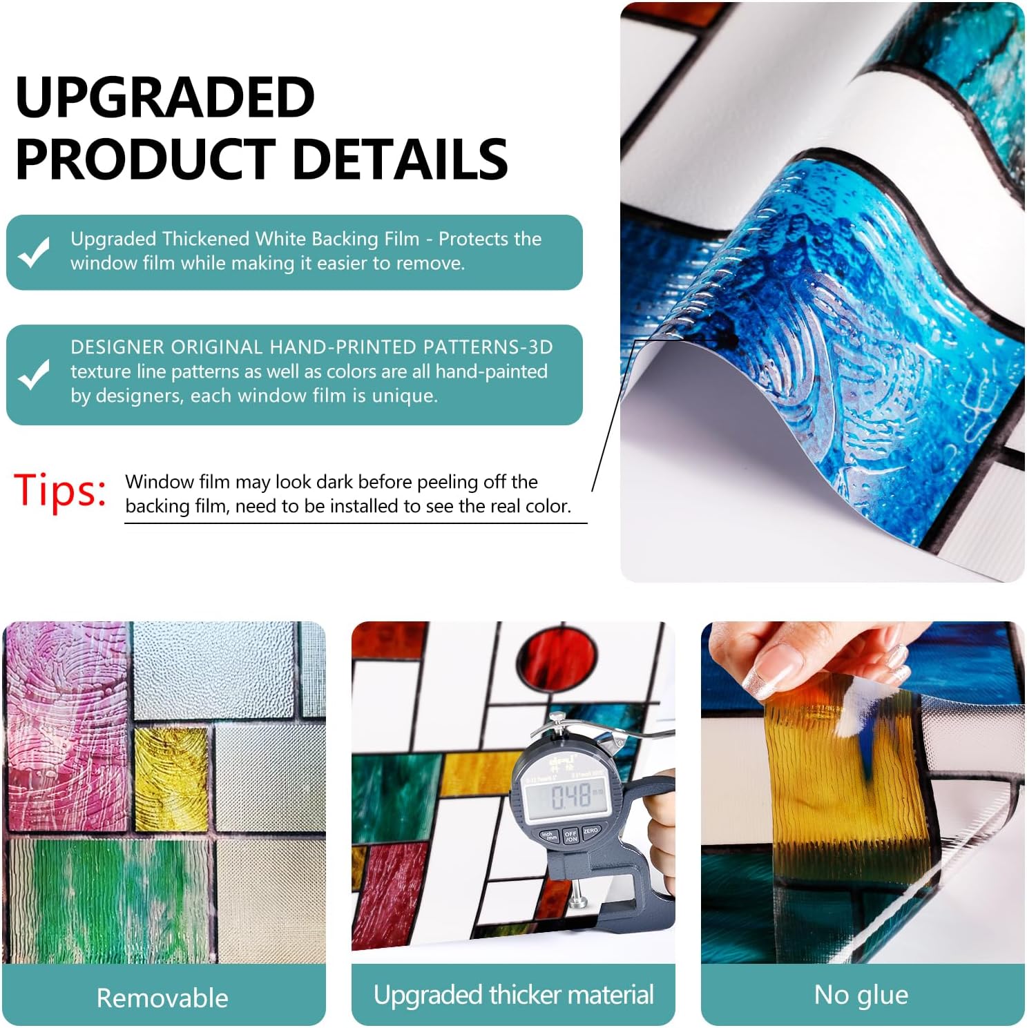 - 【UV Guard: Protecting Your Realm Naturally】Infused with state-of-the-art UV protection, our stained glass window film acts as a barrier against harmful rays. It filters out UV light, preserving the colors of your furnishings and art, and fostering a healthier living environment.