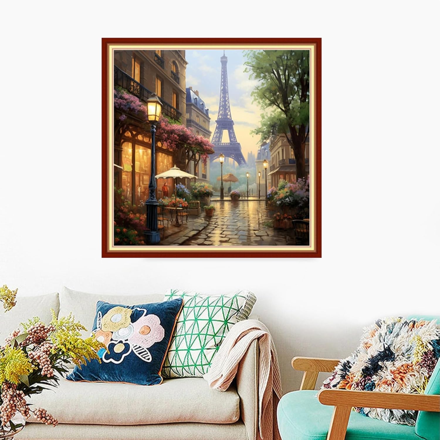 Foxdiviy Stamped Cross Stitch Kits Full Range of Embroidery Needlework Starter Kits for Beginners Adults 11CT Embroidery Patterns Art Crafts DIY Needlepoint Kits-Eiffel Tower 18x18 inch