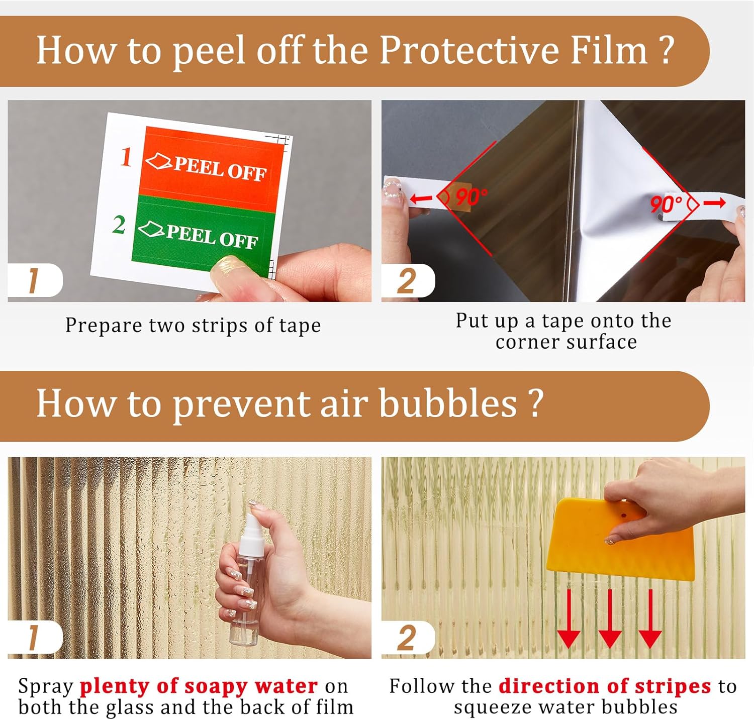 - Easy installation: Peel off the backing film before installation and films includes two peel-assist tabs for effortless removal. Spray enough water before applying and reposition the film as needed then just squeegee water out