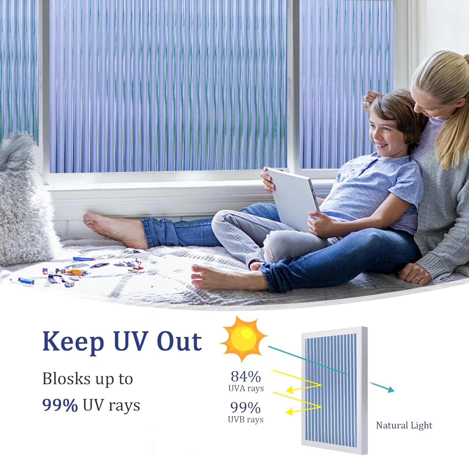 Beautyhero Window Privacy Film, Frosted Reeded Glass Cling, 3D Decorative Coverings with UV Blocking, Adhesive Stickers for Bathroom Doors Cabinet