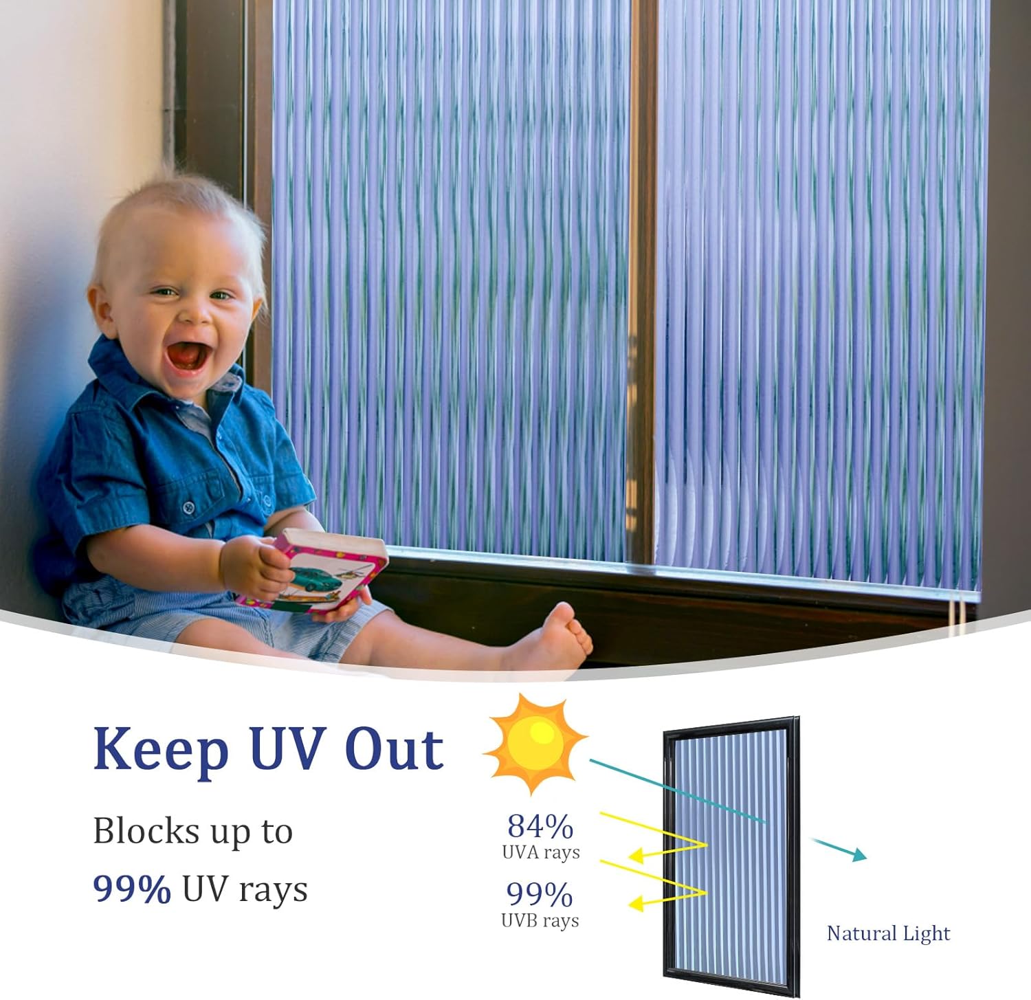 Beautyhero Window Privacy Film, Frosted Reeded Glass Cling, 3D Decorative Coverings with UV Blocking, Adhesive Stickers for Bathroom Doors Cabinet