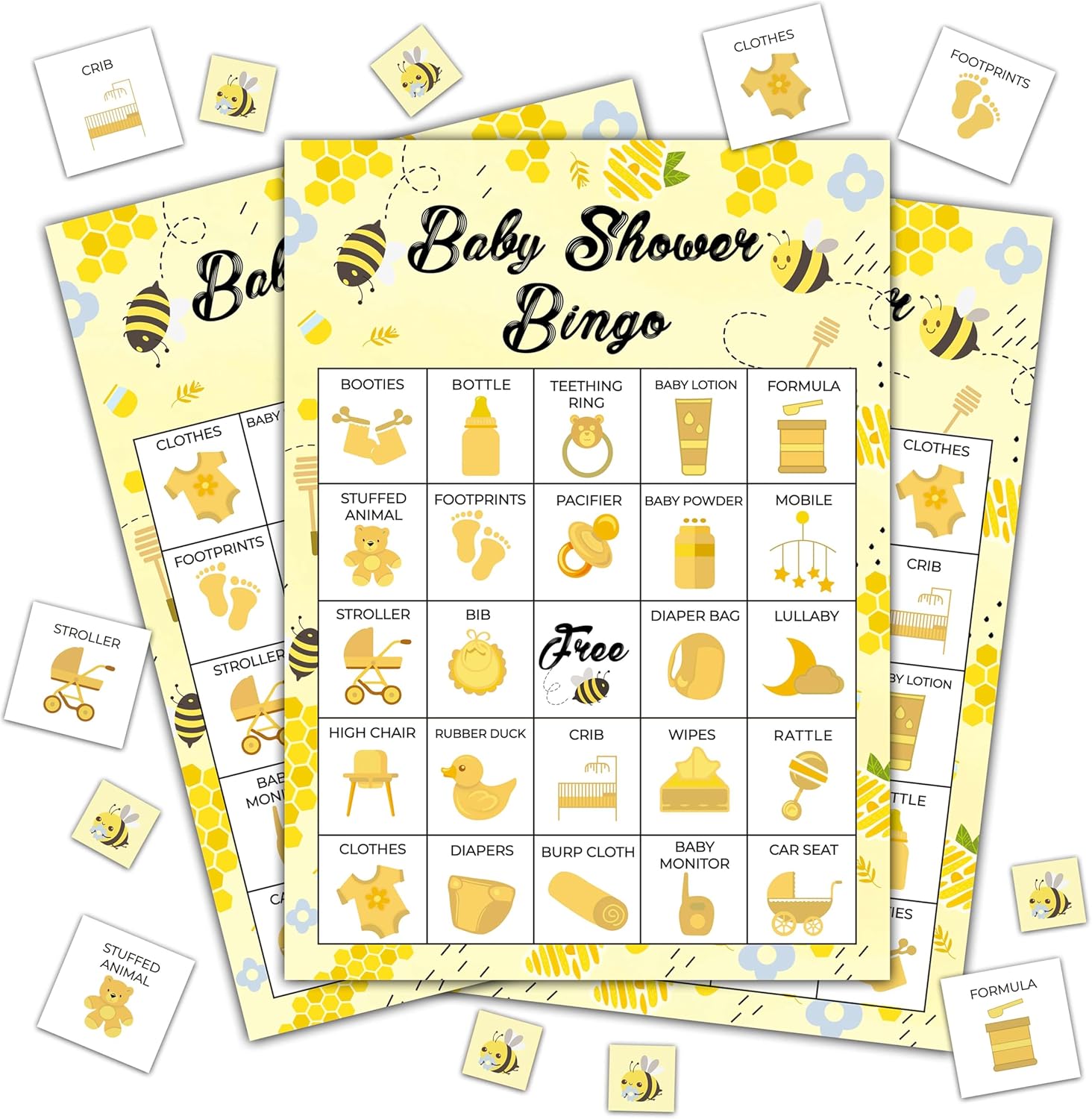 Baby Shower Bingo - 24 Player Bee Themed Game for Adults and Gender Reveal Parties