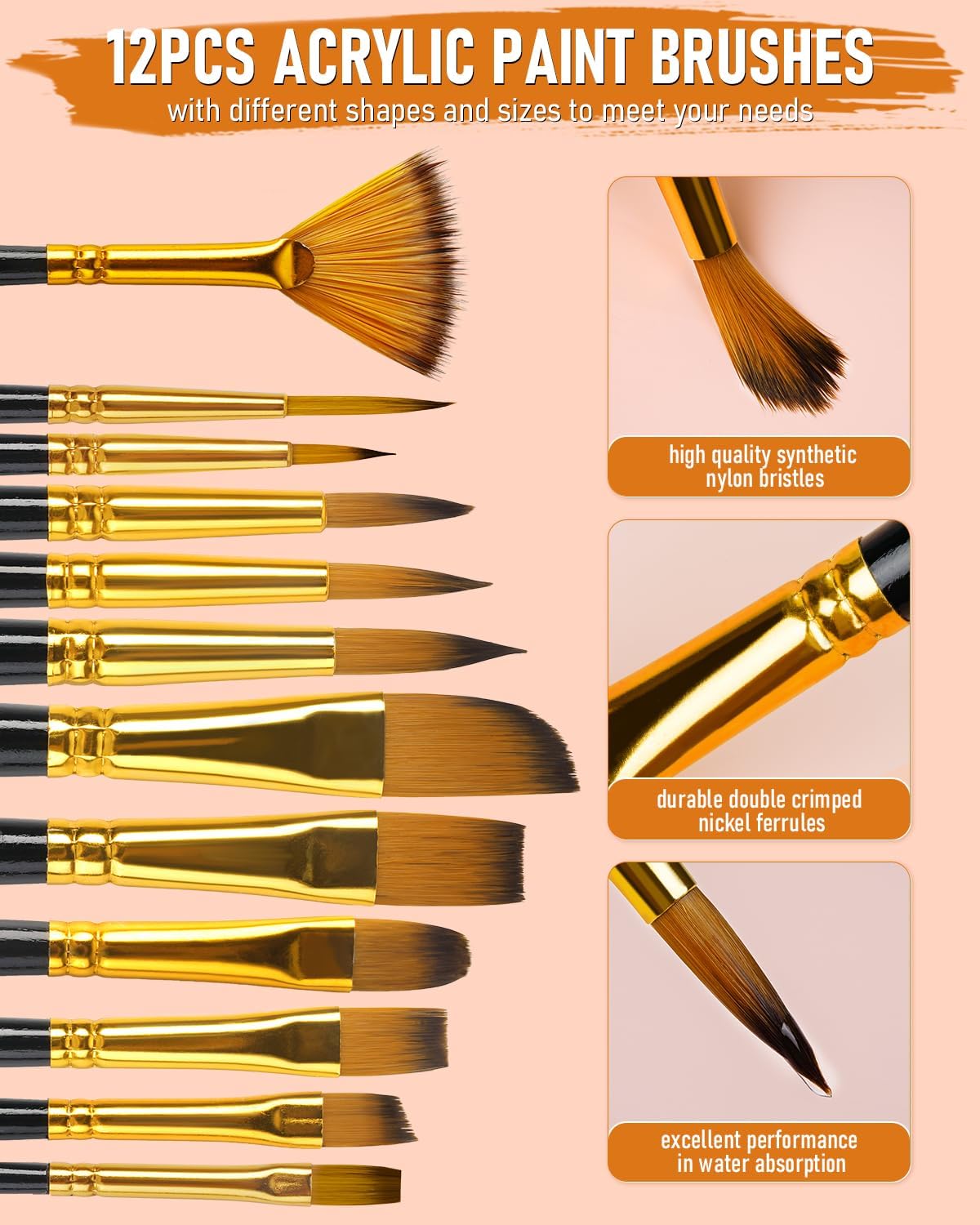 - Paint Brushes & Cleaning Cup: Made of synthetic nylon hair, 12 different shapes and sizes paint brushes provide different functions, cover all your painting needs. Also comes with silicone paint brush washer, collapsible and portable, both for painting cleaning cup and paintbrush holder