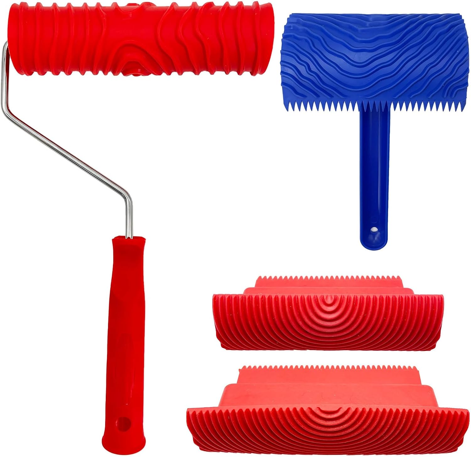 - 【PACKAGE INCLUDE】1 x 7" wood graining roller with handle; 1 x 4" wood graining rocker with handle; 2 x wood grain rubber tools