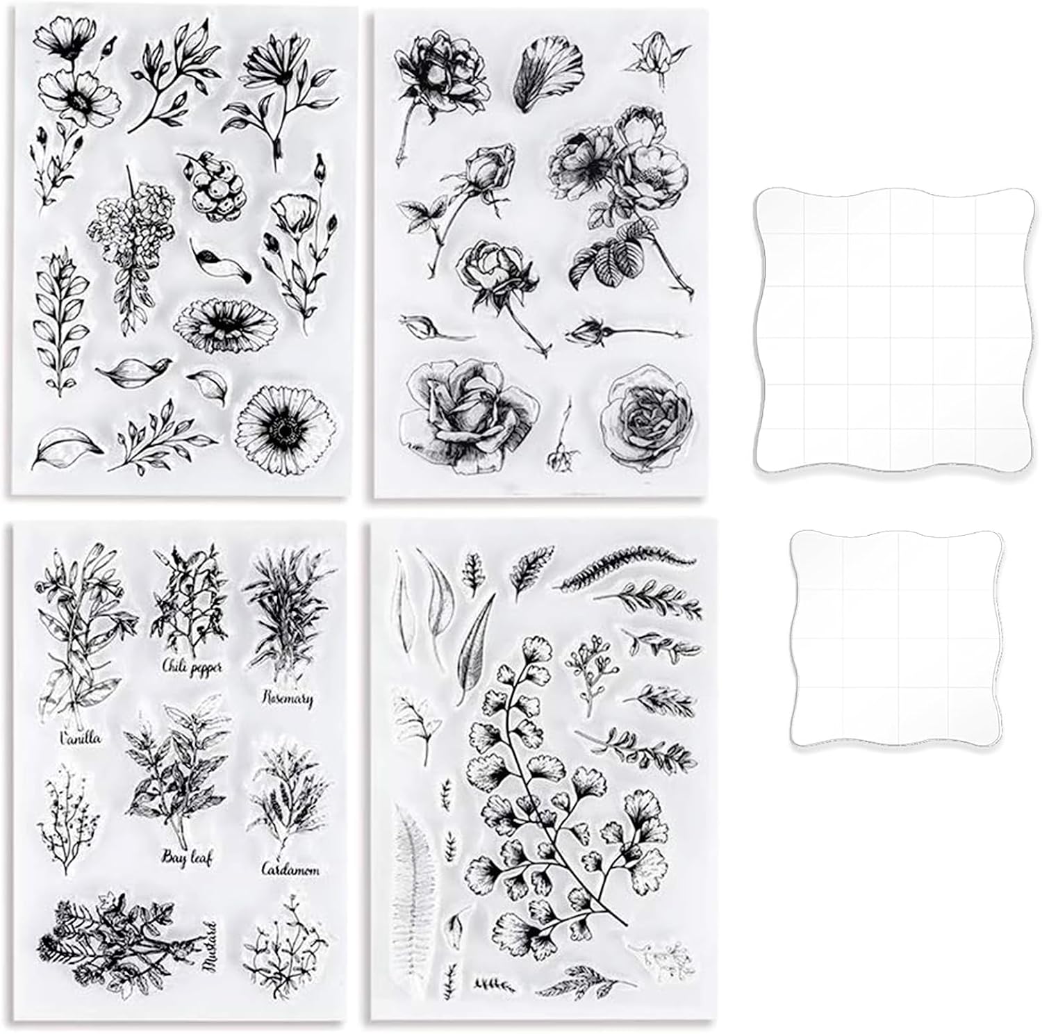 - Distinct Botanical Patterns: Our premium clear stamps set features 4 themed sheets (Dream Blooms, Summer Blossoms, Leaf Sketch, Plant Guide) with many intricate motifs and includes one 7.5×7.5cm acrylic stamp block for flawless alignment of stamps for crafting, perfect for clear stamps for card making and authentic flower stamps experiences
