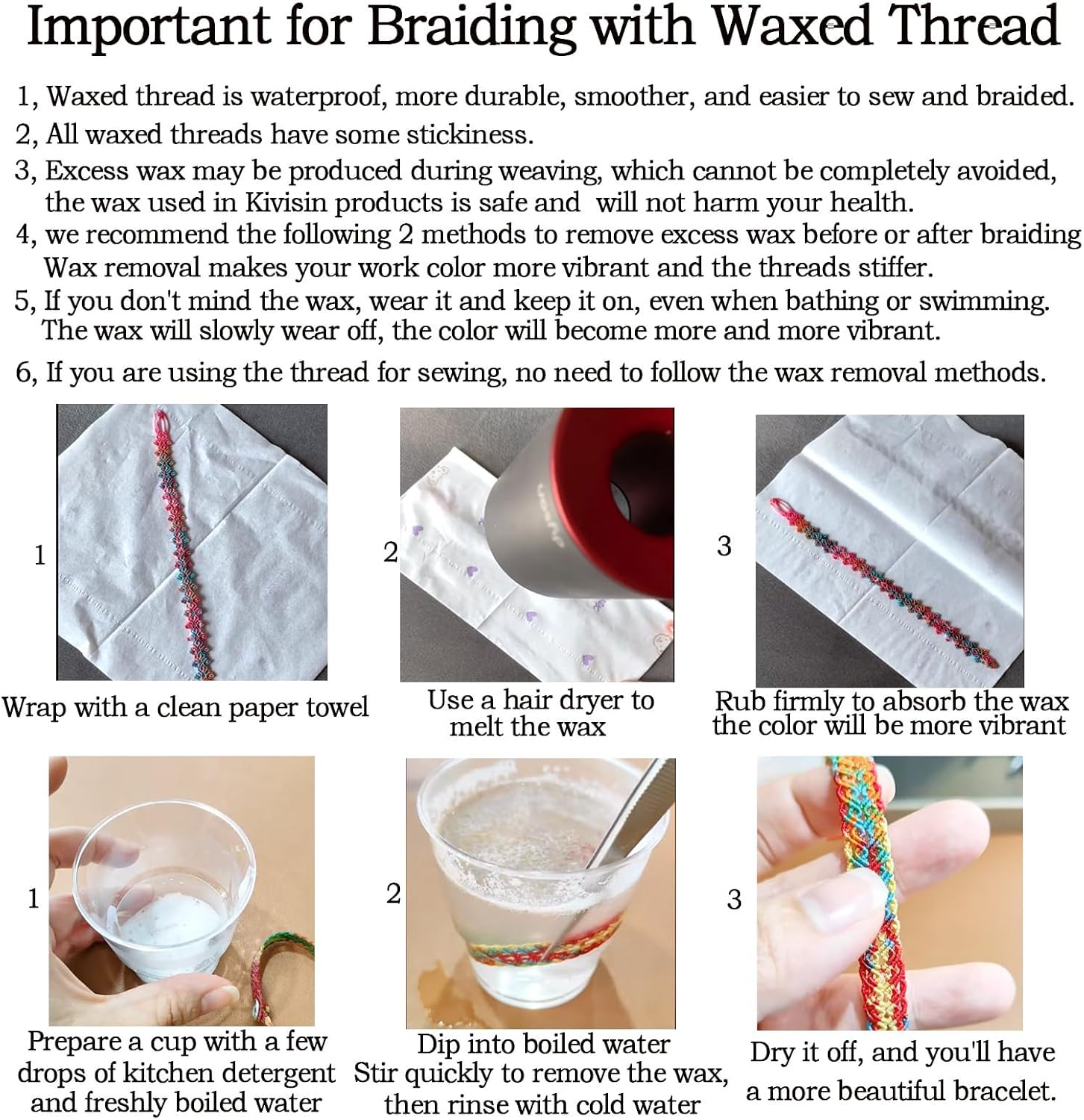 - Delicate & Colorfast - the colors remain vibrant and do not fade, making it suitable for a variety of intricate crafts and enhancing the delicacy of your handmade creations. Wax is applied internally instead of coated on the surface. However, if you find the wax too sticky, it can be removed with hot water and detergent. certainly, the wax will naturally wear off over time, enhancing the appearance of the color