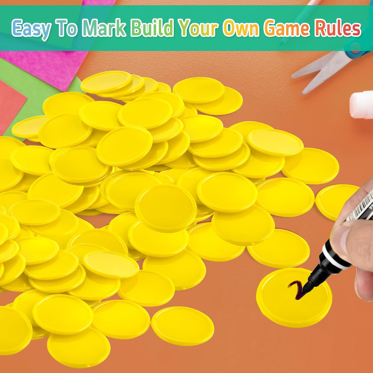 Coopay 1 1/2 Inches Plastic Poker Chips Learning Counters Disks Bingo Chip Counting Discs Markers for Math Practice and Poker Card Game Tokens, Teaching Rewards, 200 Pieces (Yellow)