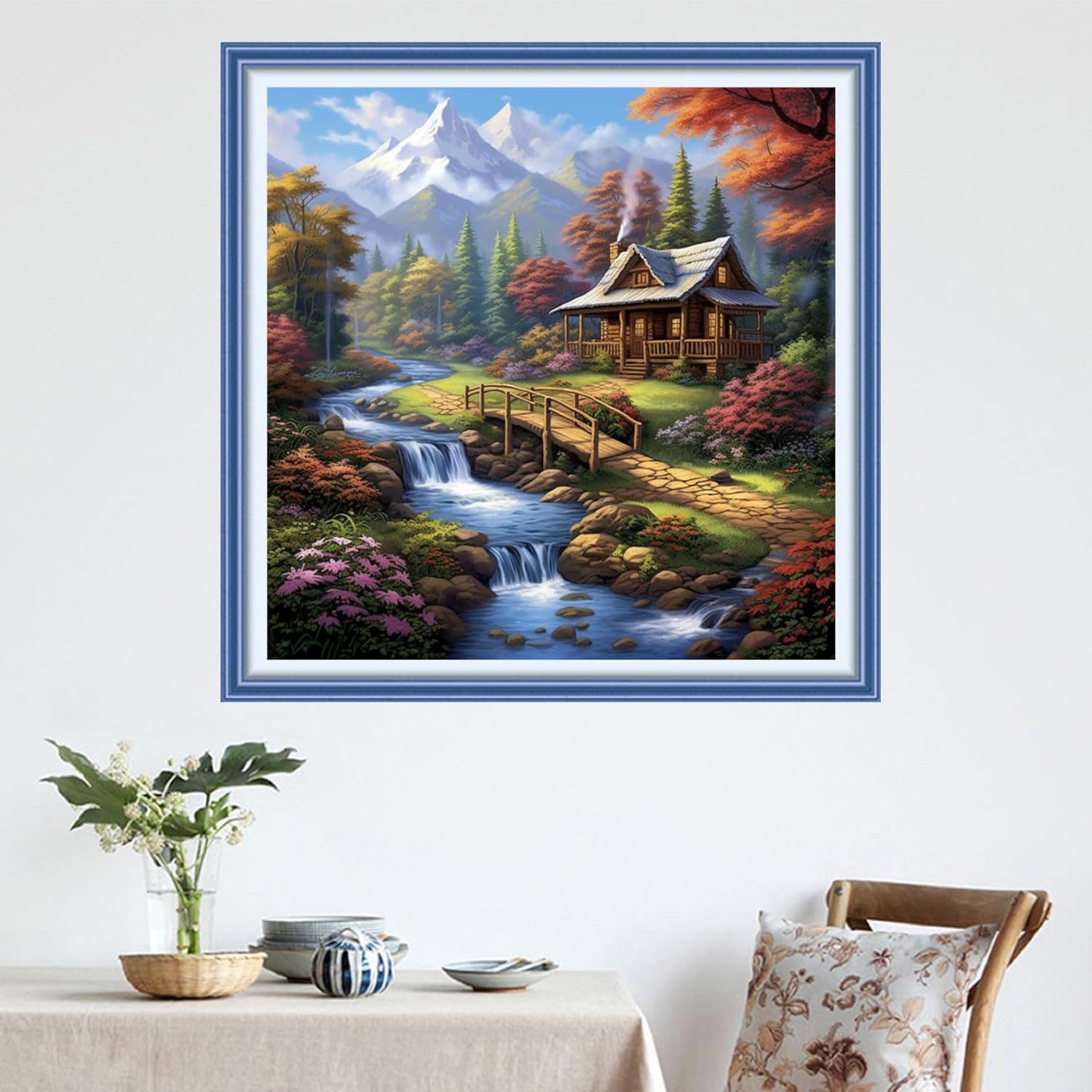 DMCVIVR Stamped Cross Stitch Kits for Adults Beginners Embroidery Kits 11CT Needlepoint Kits Cross Stitch Patterns Embroidery Patterns&Creek Scenery 18x18 inch