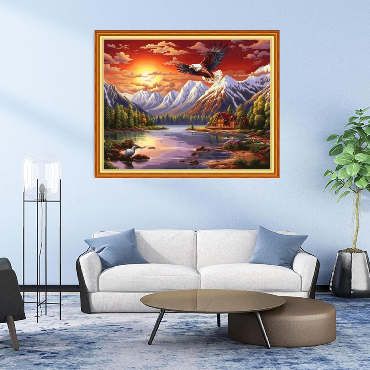 DMCVIVR Stamped Cross Stitch Kits for Adults Beginners Embroidery Kits 11CT Needlepoint Kits Cross Stitch Patterns Embroidery Patterns&Landscape Eagle 16x20 inch