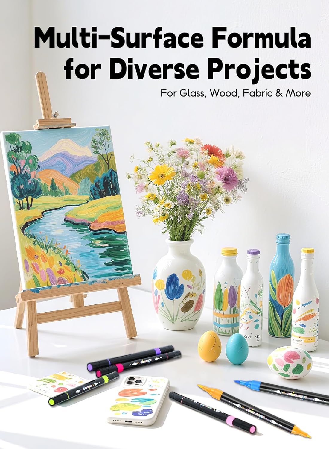 - Multi-Surface Use: Our acrylic markers are suitable for a variety of surfaces including paper, cardstock, metal, rock painting, wood, plastic, canvas, fabrics, ceramics, and more. The high-quality opaque water-based ink is odorless and acid-free, ensuring longevity of your artwork.