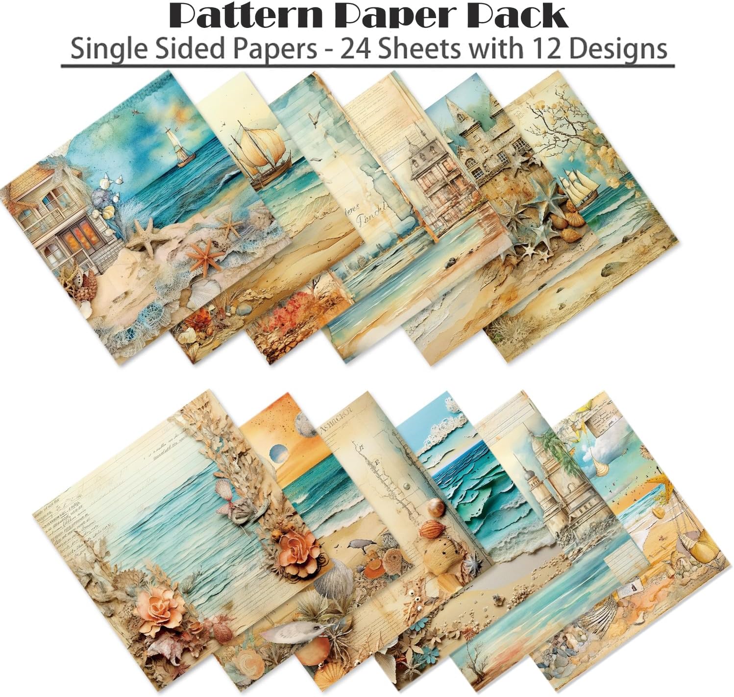 YASMEN 6"x6" Scrapbook Paper Pad - 24 Sheets of Patterned Cardstock for Card Making, Scrapbooking, Junk Journal, DIY Gift Cards - Single-Sided Decopodge Decorative Craft Paper