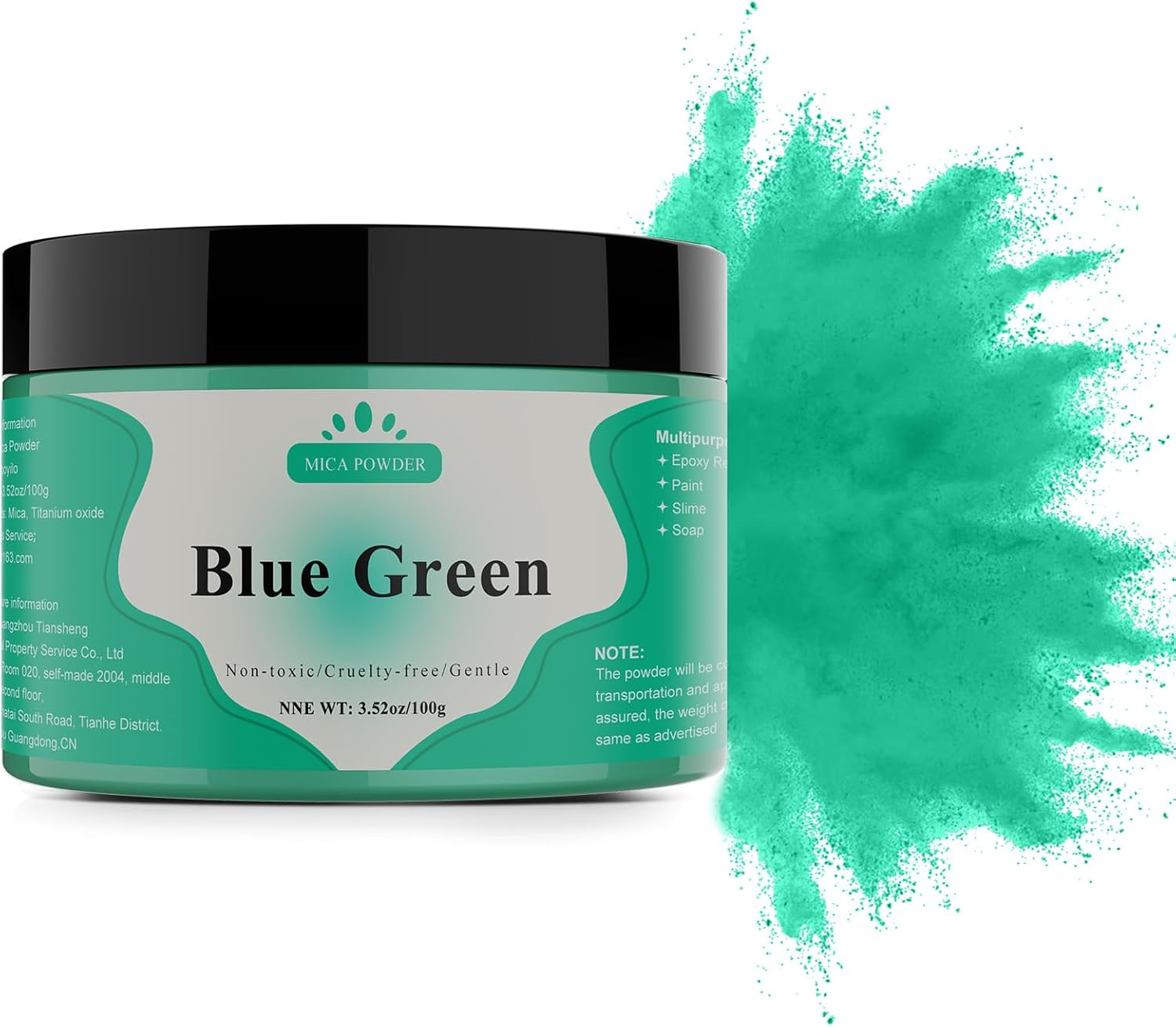 - 【3.52oz/100g Blue Green】This pigment powder is 10-60µm in size. Comes with 100g(3.52oz) per jar would meet your large dye needs.