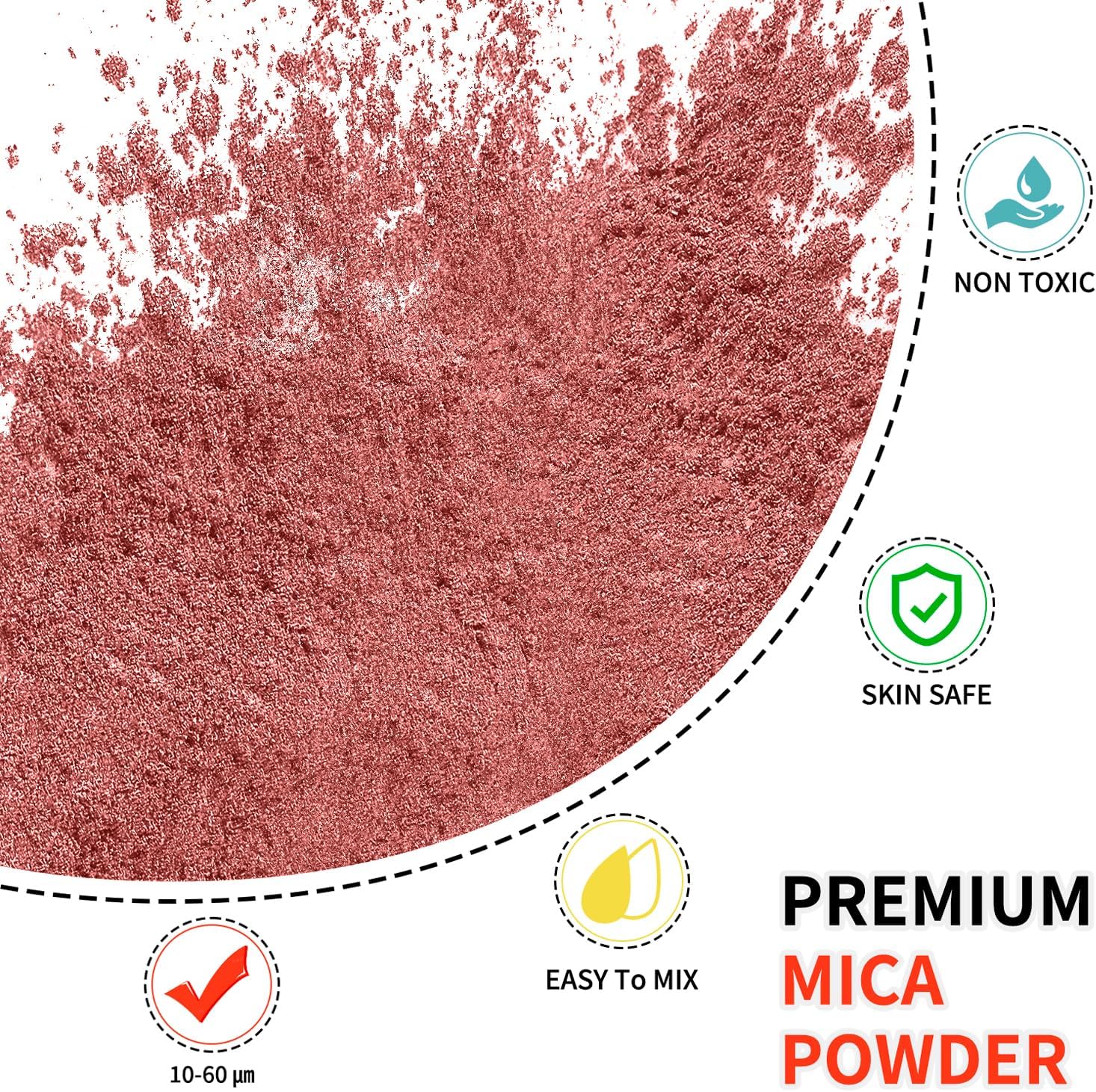 - 【Widely Use】This Premium mica powder are very fine particle pigment that can work well with epoxy resin, soap making, makeup, cosmetics, slime, nails, bath bombs, etc.