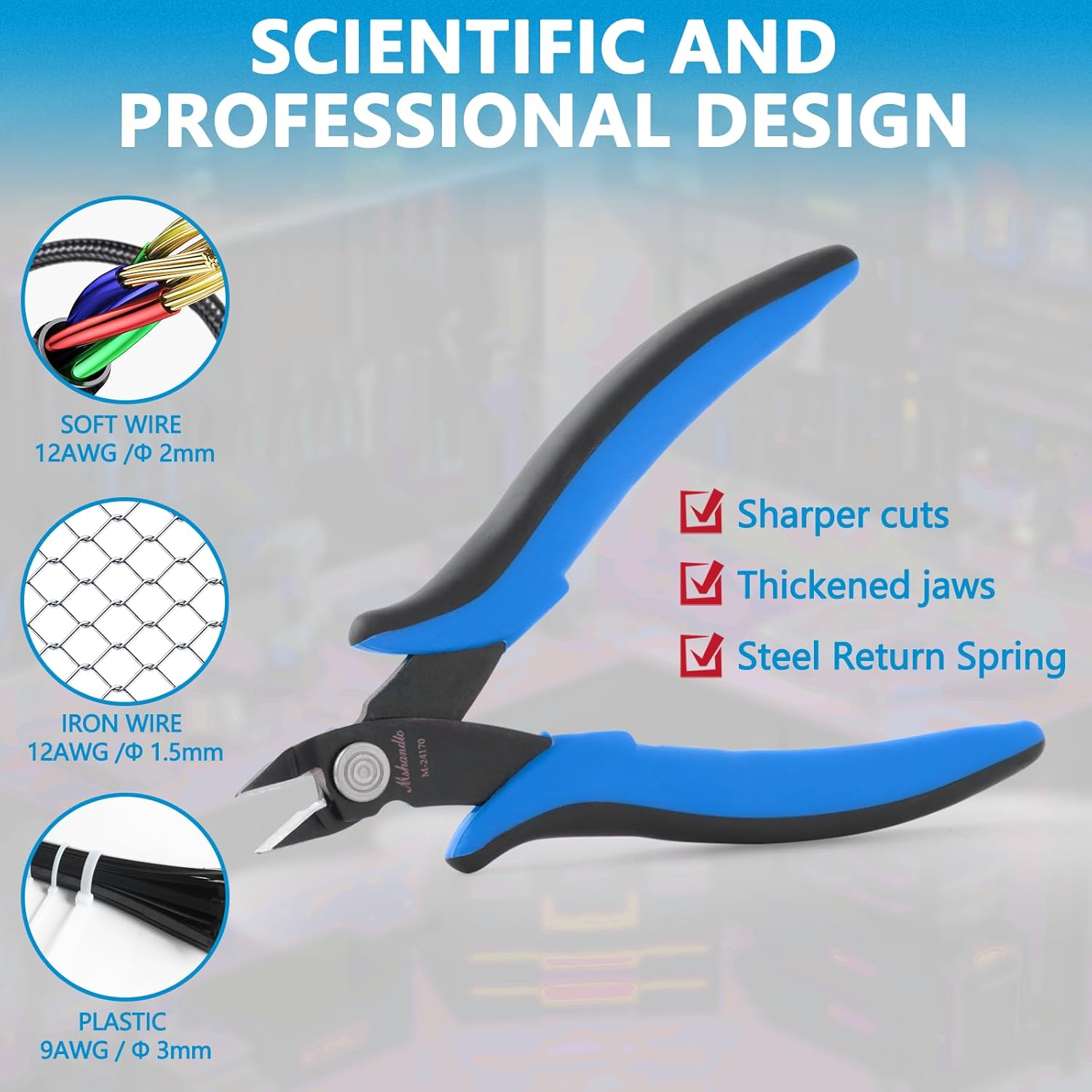 - π [3pack Tool Set] Our diagonal pliers feature different colored rubber grips for easy differentiation and comfortable use. The curved bevel plier head design with an inclination of 28Β° is more suitable for small spaces and precision models, and the ultra-thin shape increases the passage capacity in narrow areas.