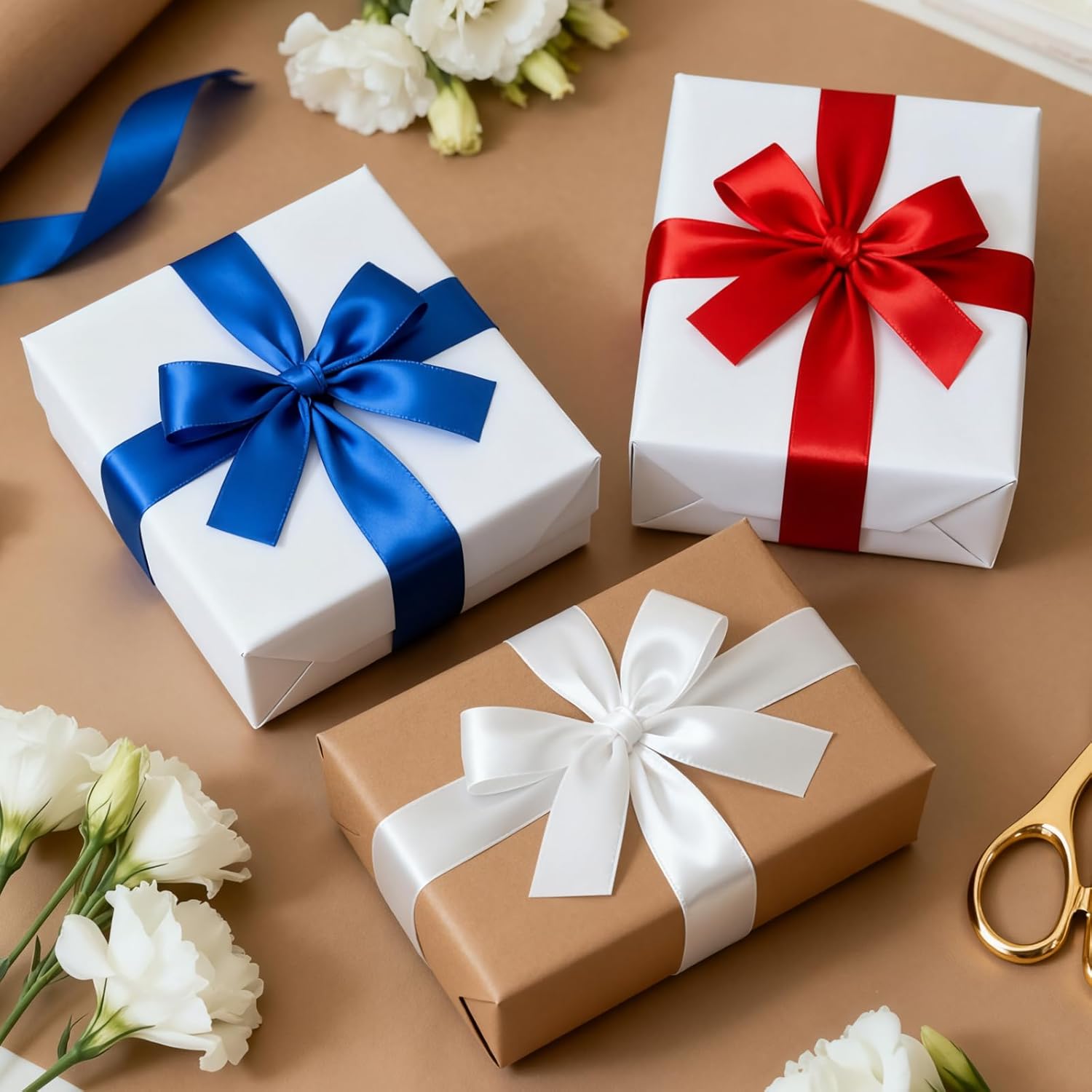 - 【Bright Color】: The satin ribbon for wrapping has multiple choices for colors. The solid color ribbon will not fade easily and is durable in different situations and occasions like birthday, wedding, party, baby shower, back to school, holiday decorations, home coming, anniversary, family gathering and more.