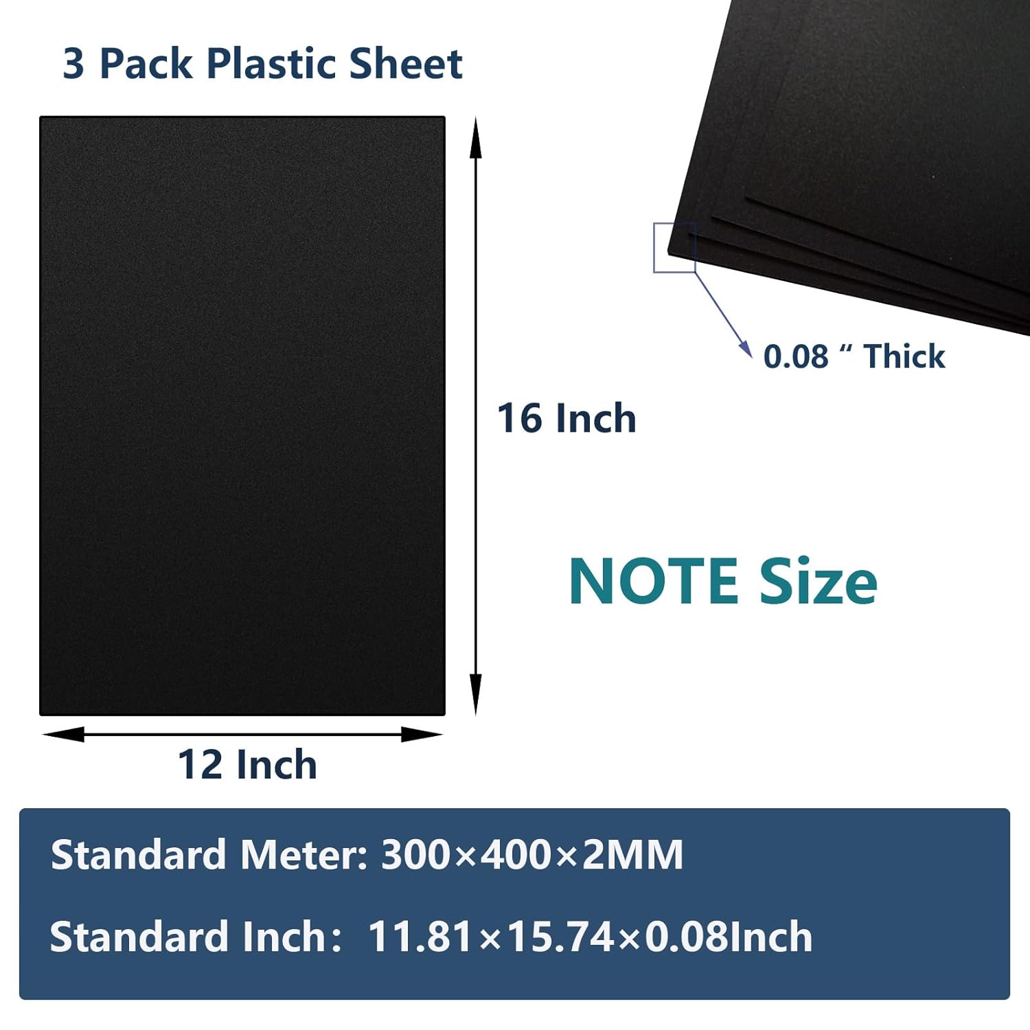 - Plastic Sheet: This pack includes 3 high-quality black plastic sheets, measuring 12 x 16in size,their thickness of 0.08". These plastic sheets are an important part of a variety of applications, offering a durable and versatile solution for all your project needs.