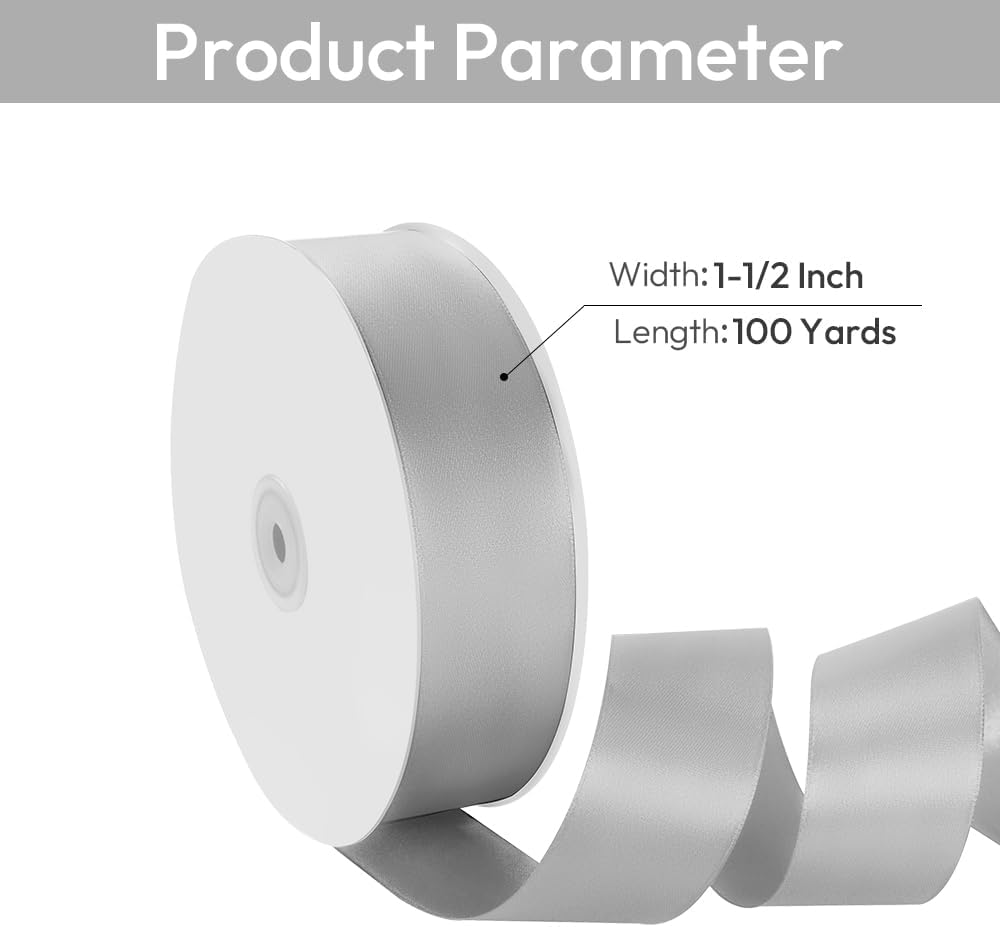 - 【Ample Length for Your Craft】1-1/2 inch silver satin ribbon is 100 Yds long, providing ample material for all your crafting needs such as wedding invitations, sewing, hair bows, flower bouquet supplies, lei making, homecoming mum accessories, and more.