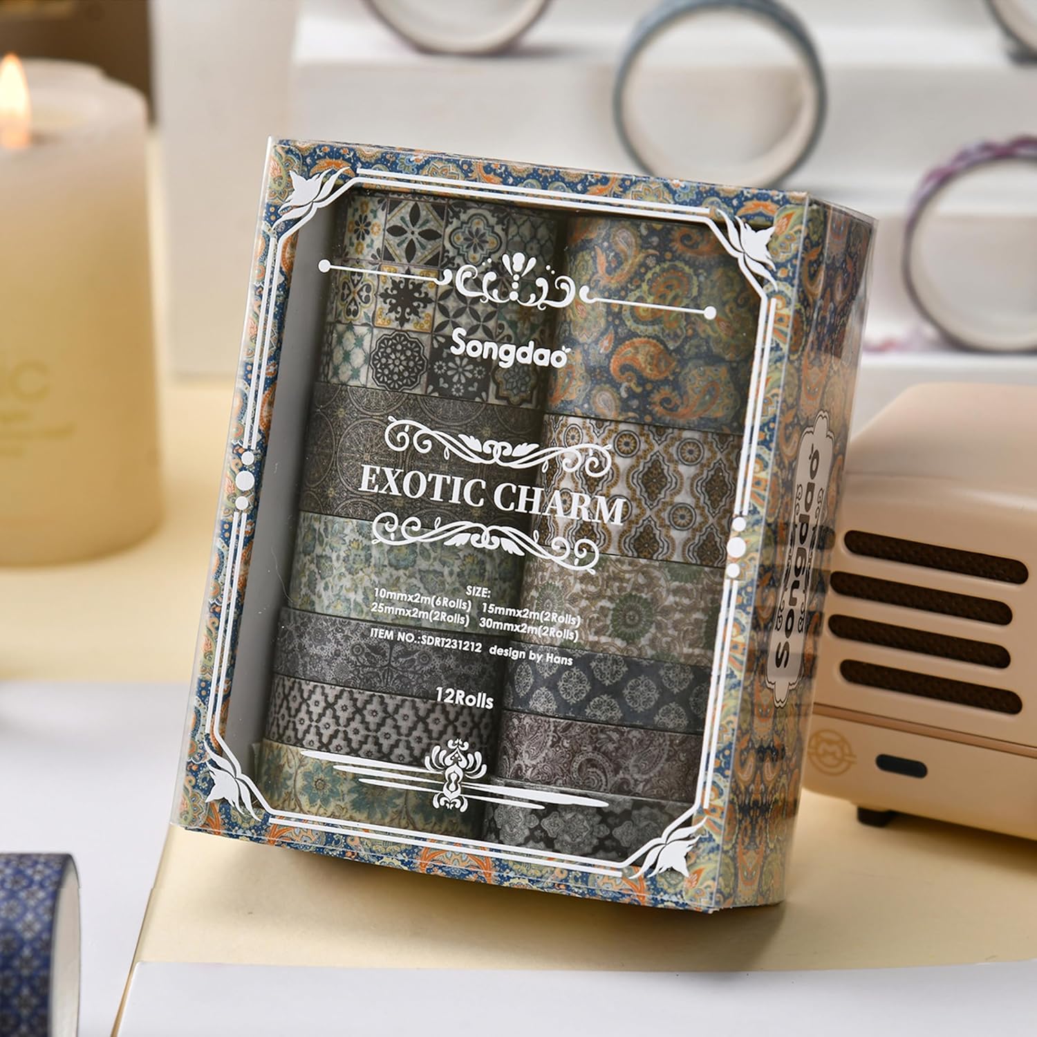 - 👍【ETHNIC DESIGN】This decorative tape set is composed of 12 different exotic patterns, with a total of 6 combinations to choose from (no repetition). It shows cross-cultural allure of international mystique, and they will make your works full of vitality!