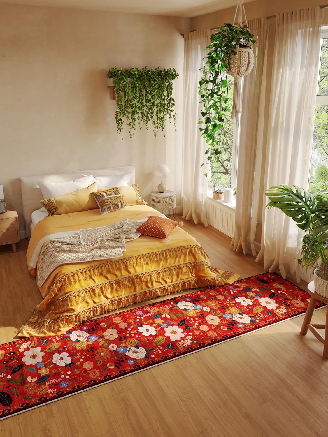 Rugcomf Runners for Hallways Kitchen Runner Rug Non Slip 2'x 10' Long Washable Rugs with Rubber Backing Soft Floral Carpet Runner for Hallways, Kitchen, Laundry, Bedroom, Bathroom(Red)