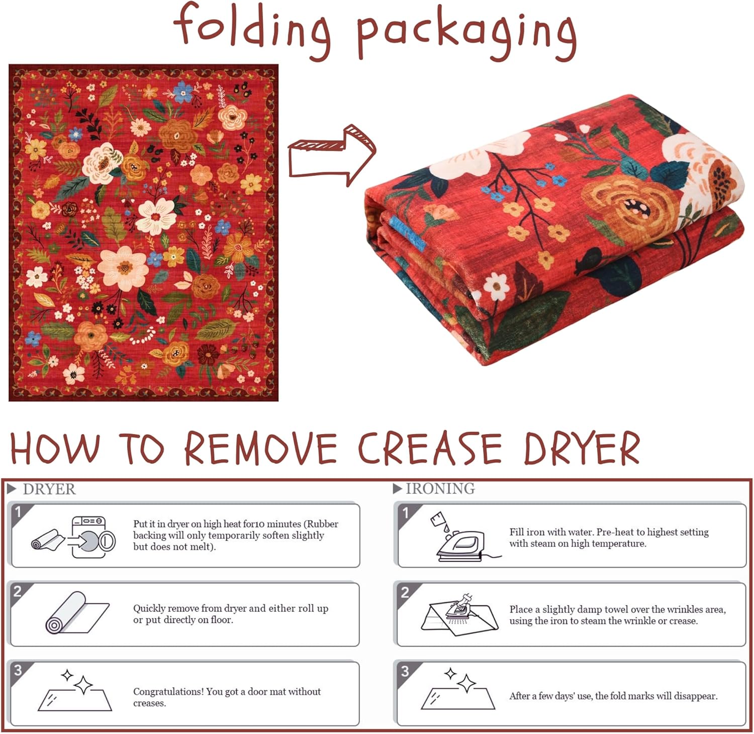 Rugcomf Door Mat Indoor Entrance 2x3 Rug Machine Washable Boho Floral Small Area Rug Non-Slip Low Pile Throw Rugs for Entryway, Kitchen, Front Door Indoor Entrance, Entry, Kids Room (Red)