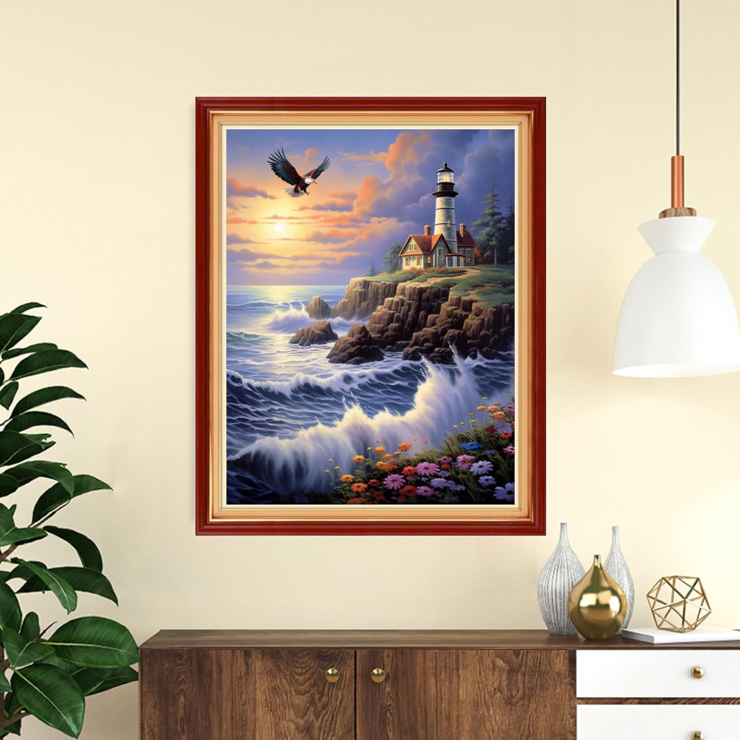 DMCVIVR Stamped Cross Stitch Kits for Adults Beginners Embroidery Kits 11CT Needlepoint Kits Cross Stitch Patterns Embroidery Patterns-Seaside Lighthouse 16x20 inch