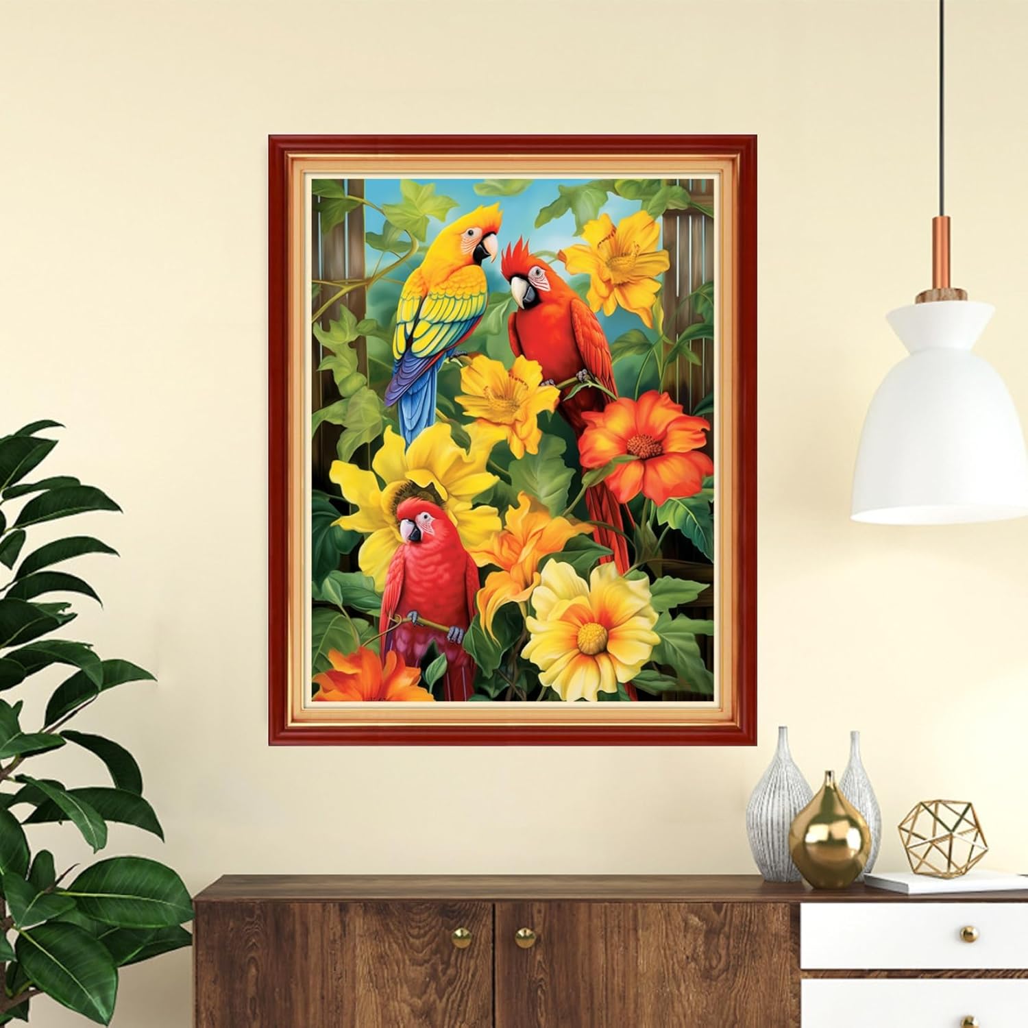 DMCVIVR Stamped Cross Stitch Kits for Adults Beginners Embroidery Kits 11CT Needlepoint Kits Cross Stitch Patterns Embroidery Patterns-Parrot Flowers 16x20 inch