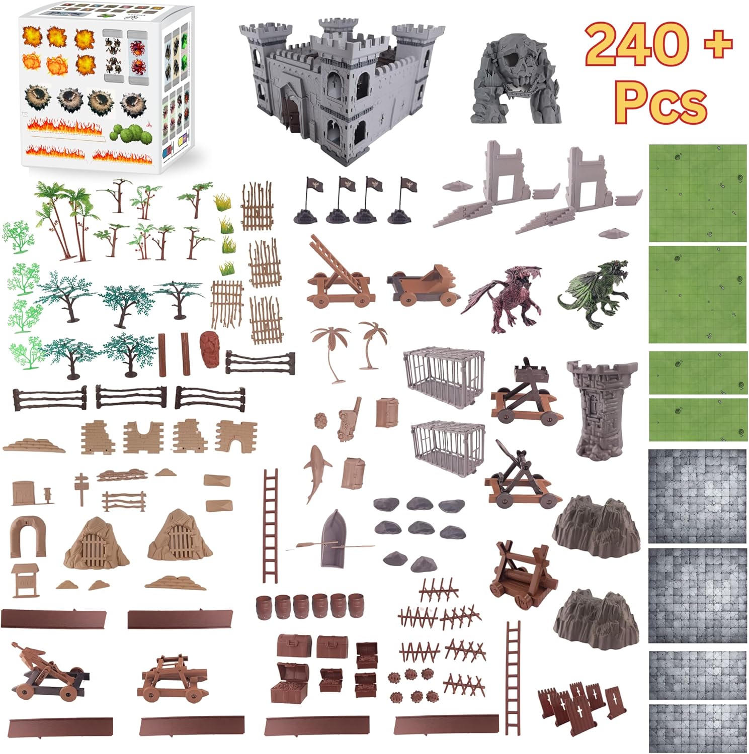 - Dungeons and Dragons castle set, DND terrain accessories, Tabletop gaming castle, Miniature model, Accessories, Fantasy RPG terrain, Dragon figurines, Siege , Double-sided battle map, gaming map, Landscape set, Playset, RPG gaming supplies, Castle siege scenery, Gaming terrain, Role-playing game, Miniature terrain, Gaming supplies, Dragon miniatures, Tabletop terrain, Dungeon scenery, Battle map accessories, Gaming props, RPG landscape, Landscape accessories