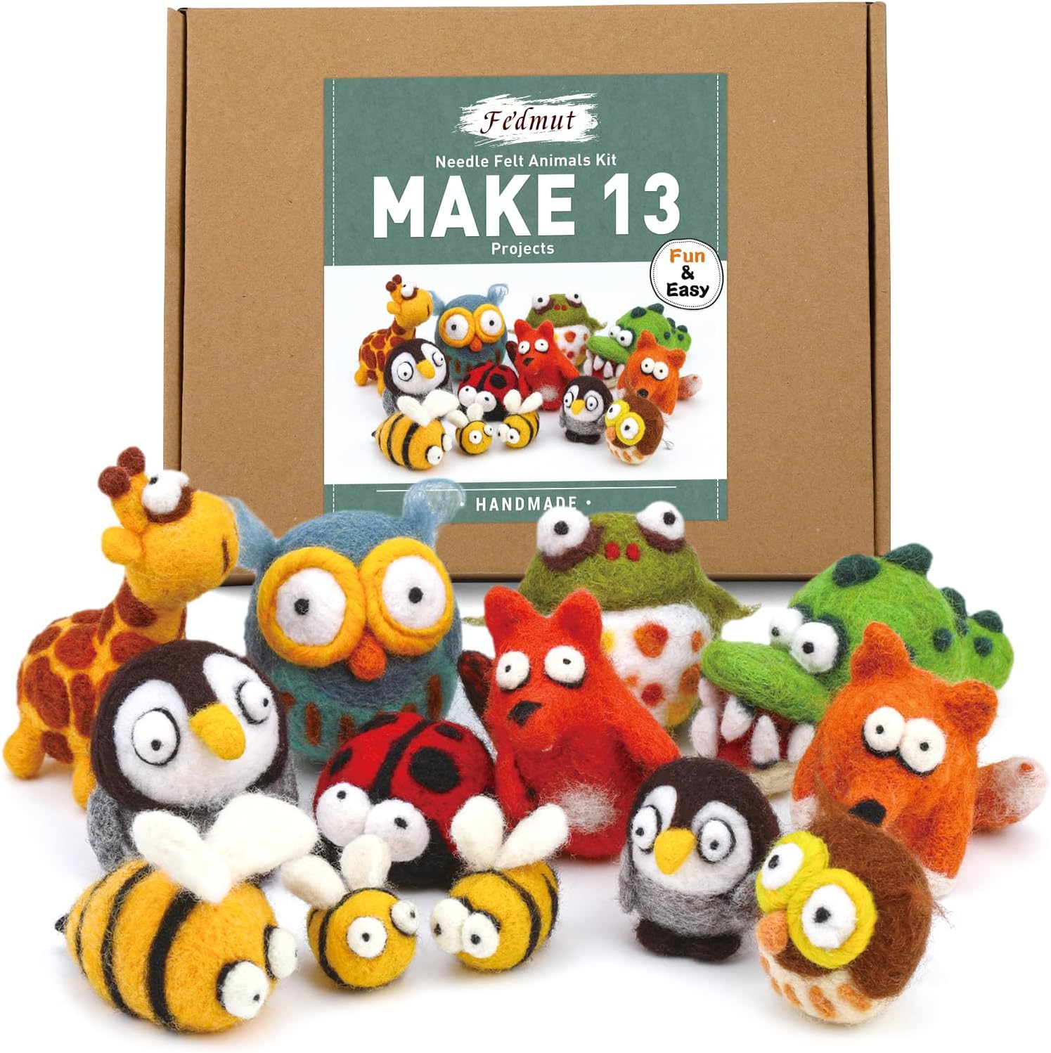 Fedmut Needle Felting Kit - 13Pcs Needle Felting Kit for Beginners with Wool Roving, Felting Pad, Felting Needles for Starters DIY Craft Animal Home Deco Birthday Gift
