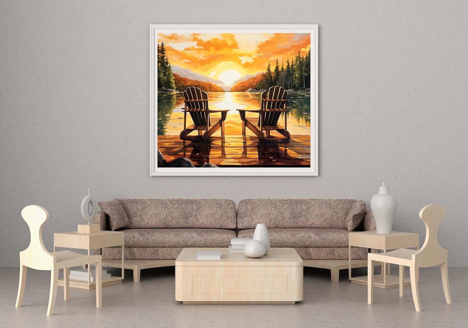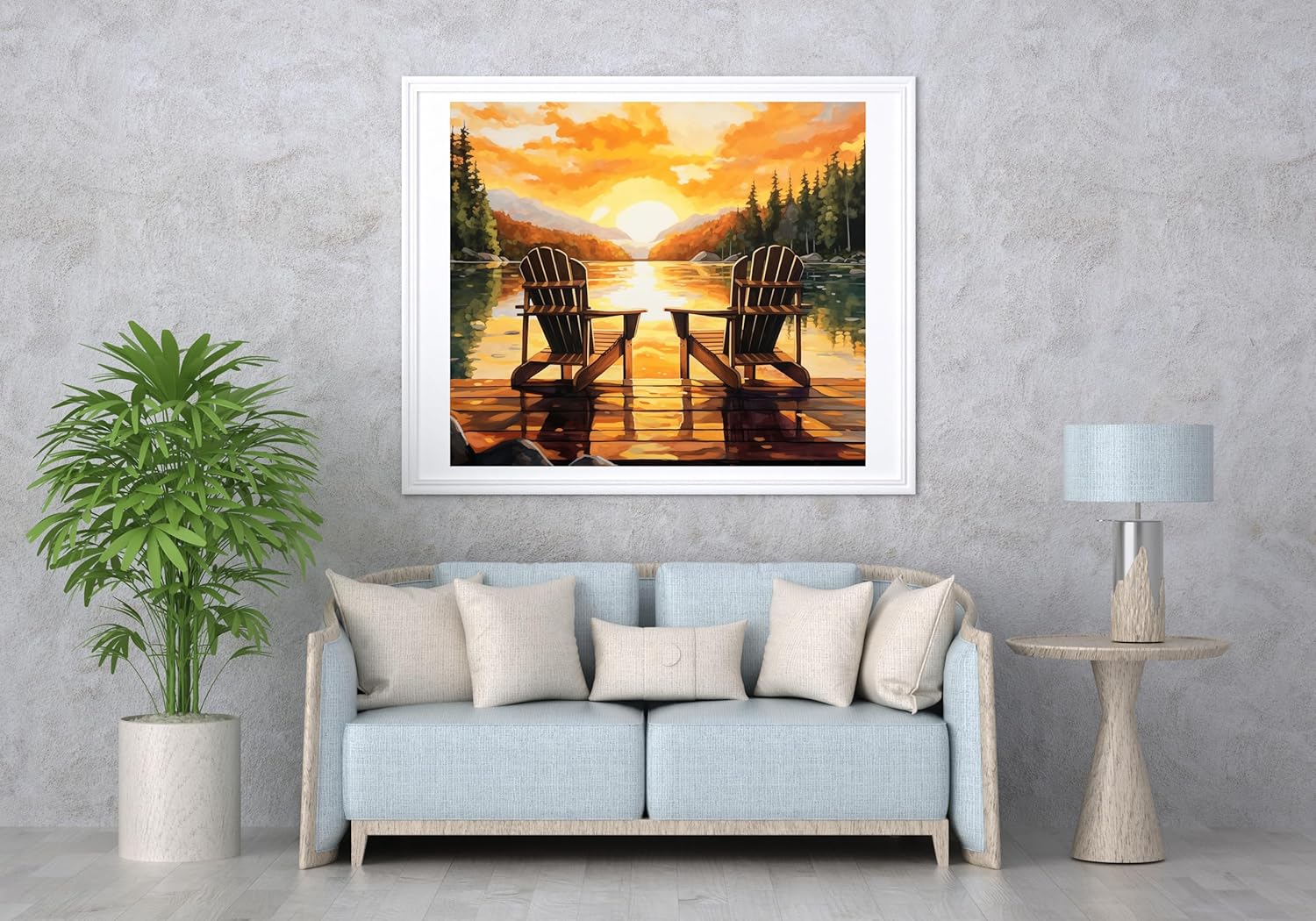 14CT Counted Cross Stitch Kits for Adults Mountain Flowers Stamped Cross Stitch Kits for Adults Clearance (Lake)
